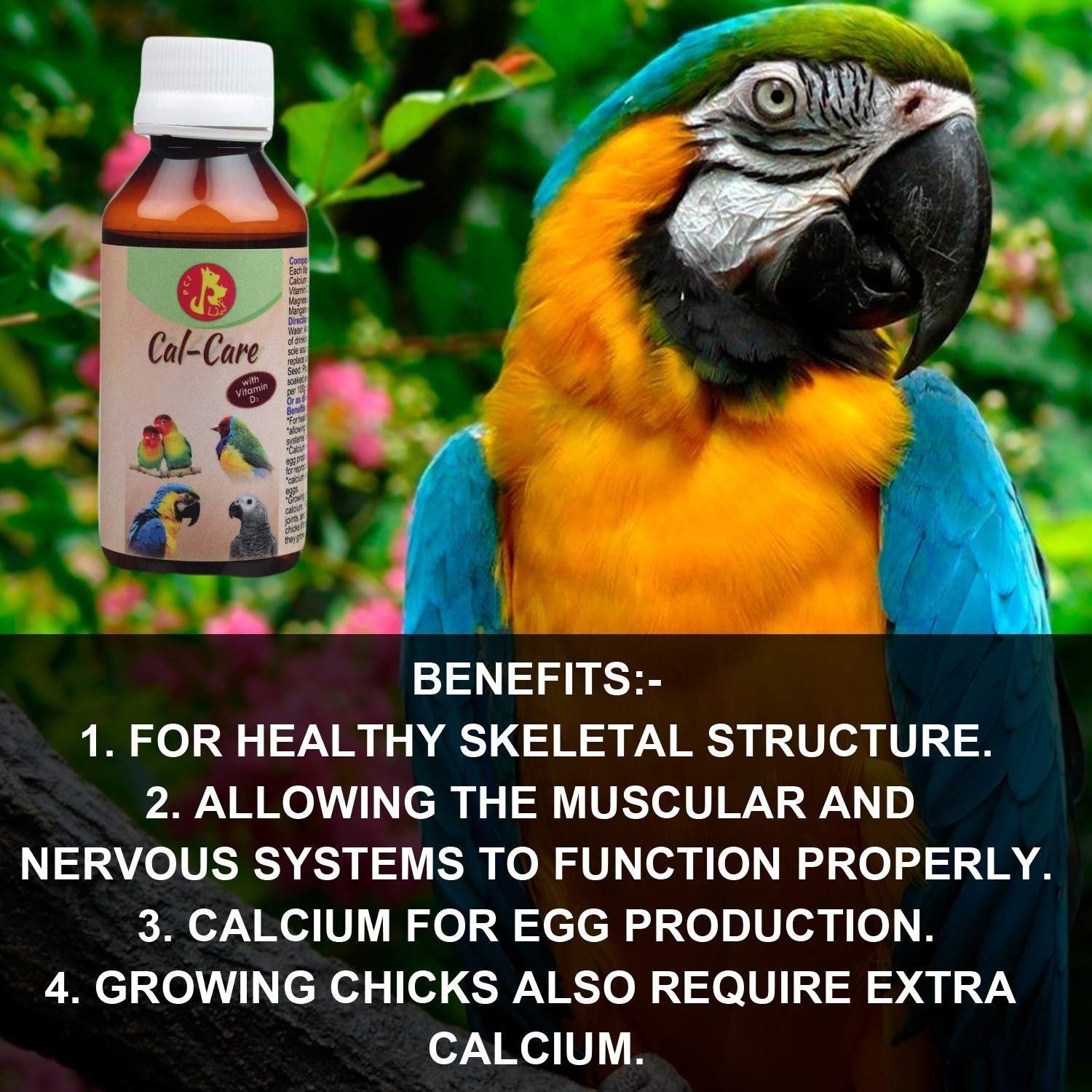 Cal Care – Beneficial For Healthy Skeletal Structure. Ensures proper functionality of Muscular and Nervous Systems. Proper Calcium dosage ensures Good Eggshell Formation during breeding.