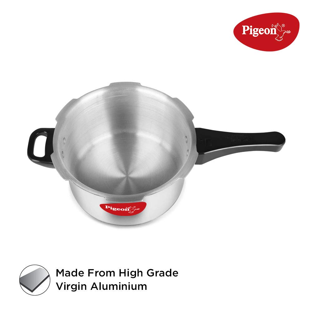 Pigeon by Stovekraft Aluminium Outer Lid Pressure Cooker Cooker 2,3 and 5 Litre with Flat Tawa and Fry Pan Combo, silver, large, 14465