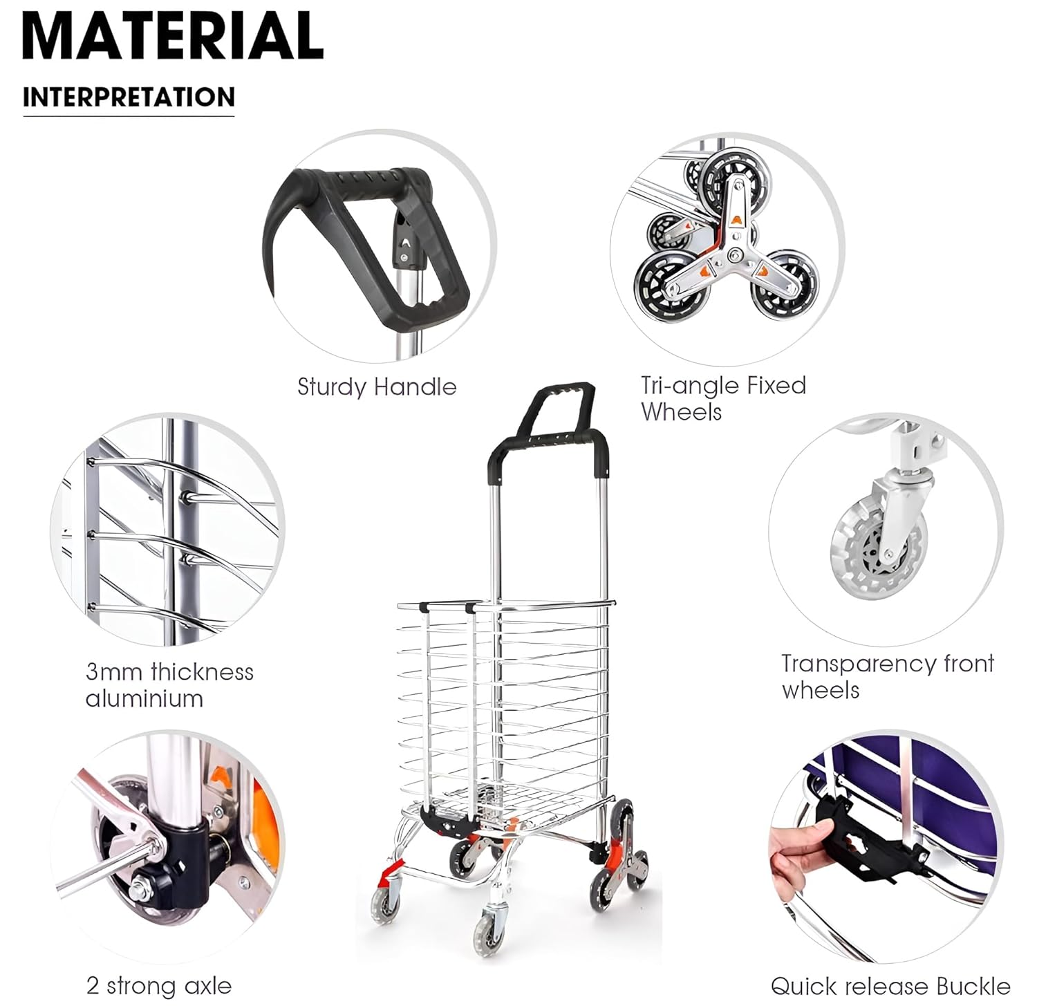 ✅🛒 [EASY TO HANDLE STEPS WITH THREE REAR WHEELS] The three rear wheels rotate, allowing you to move smoothly over stairs and steps. Excellent stability.