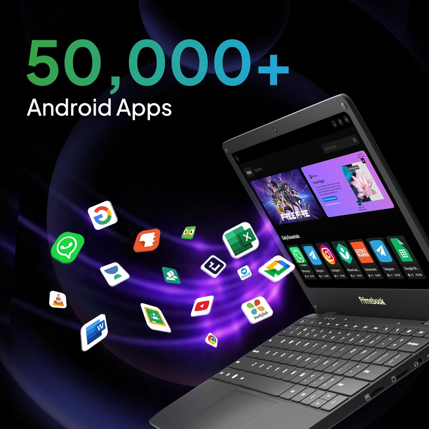 Primebook 4G, 2024(NEW, Wifi+4G) Android Based MediaTek MT8788 – (PrimeOS) 4G SIM Slot, Thin and Light Laptop (11.6 Inch, 1.065 Kg, Type C) (4GB/64GB eMMC Storage, Black)