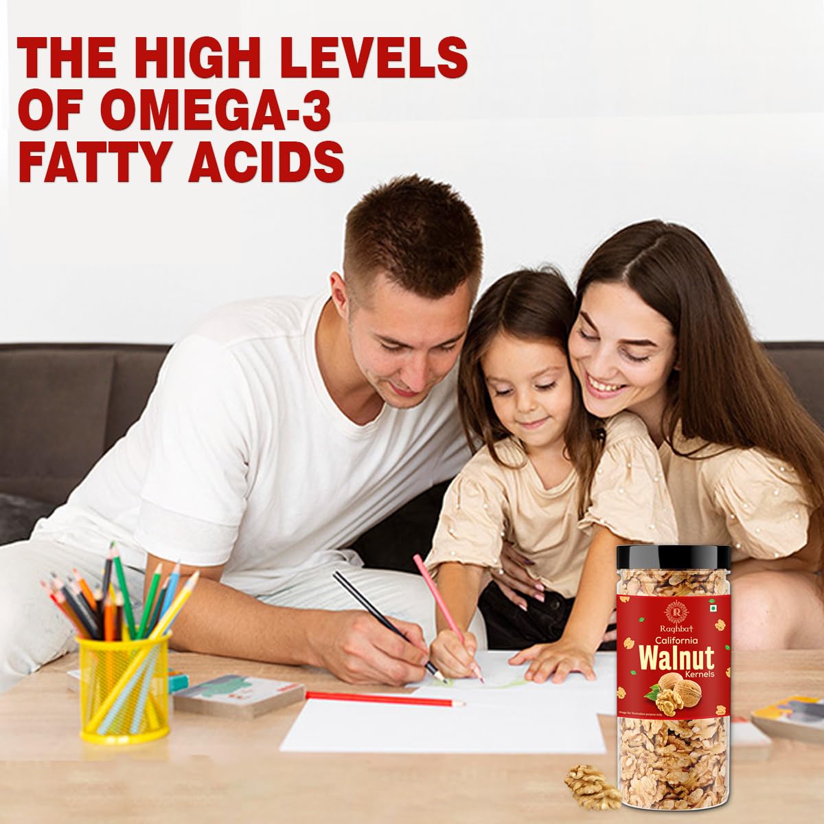 Raghbat Walnut Kernels are a wholesome addition to your diet, promoting heart health and overall well-being. They are high in Omega-3 fatty acids, antioxidants, and essential vitamins.