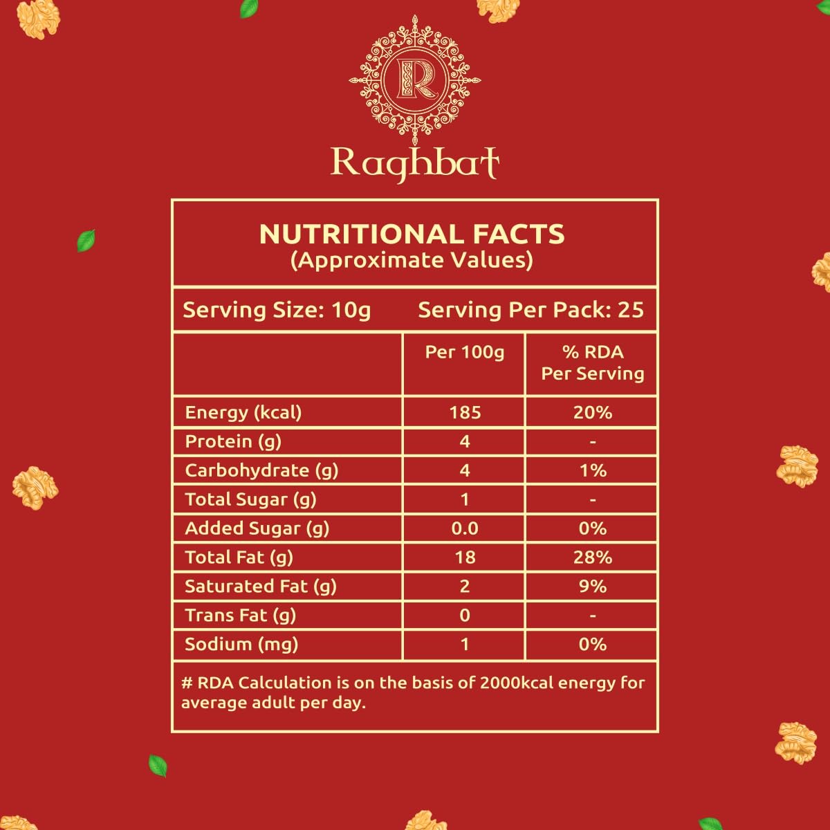 Raghbat Walnut Kernels are a wholesome addition to your diet, promoting heart health and overall well-being. They are high in Omega-3 fatty acids, antioxidants, and essential vitamins.