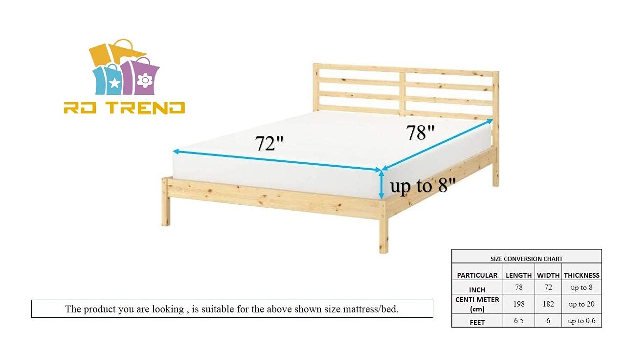 King Size All Over Elastic Fitted Bedsheet -: 72 inches x 78 inches x 8 inches (182 cm x 192 cm x 20 cm) Standard-Size 2 Pillow Covers: 18 inches x 28 inches or 46 cm x 71 cm