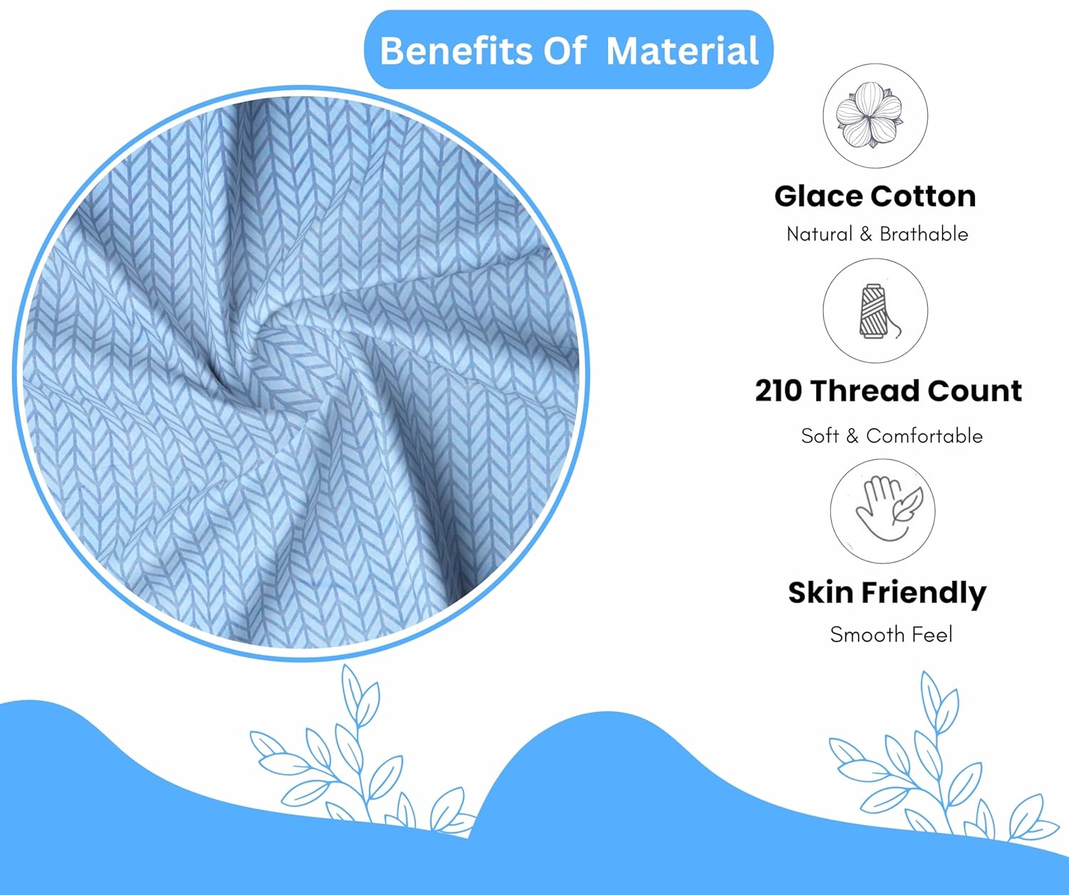 RD TREND Presents Luxurious Glace Cotton Super Soft 210 TC King Size (78X72X8 Inch) 360° Elastic Fitted Bedsheet with 2 Pillow Covers, Color- Blue,Pattern-Solid