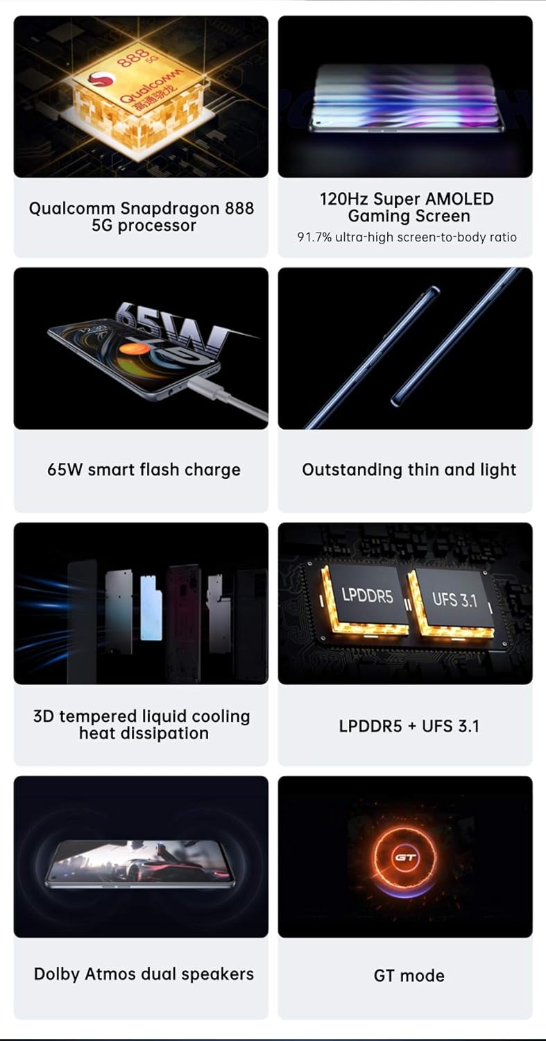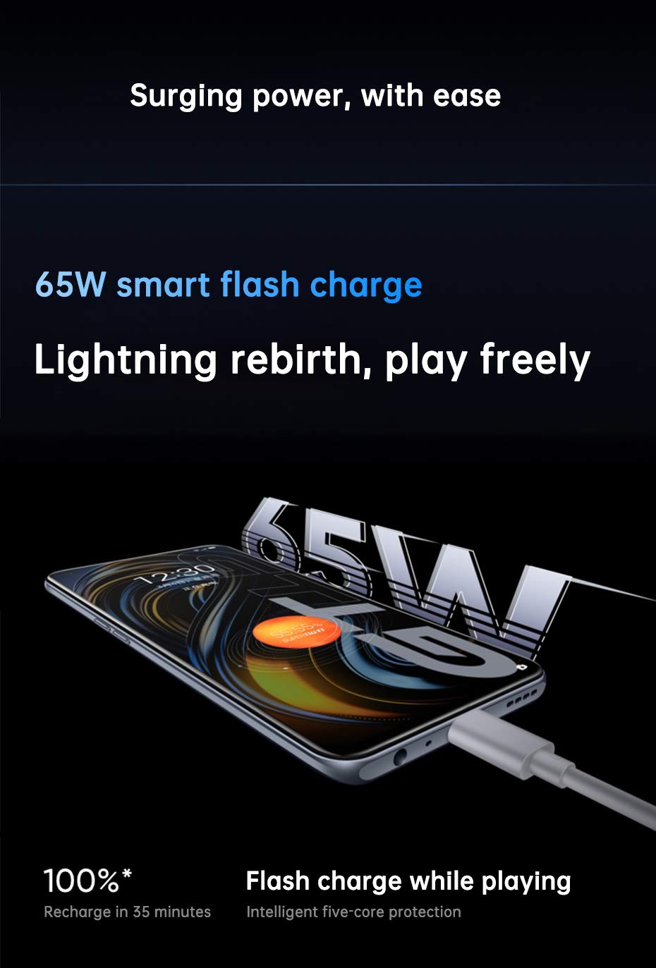Realme Dealer Original Real Me Gt 8G+128Gb 5G Mobile Phone Snapdragon 888 120Hz 6.43″ Amoled Screen 3D Glass Body 64Mp Camera 4500Mah 65W Charger Nfc Cellphones Support Google (Blue 8+128)