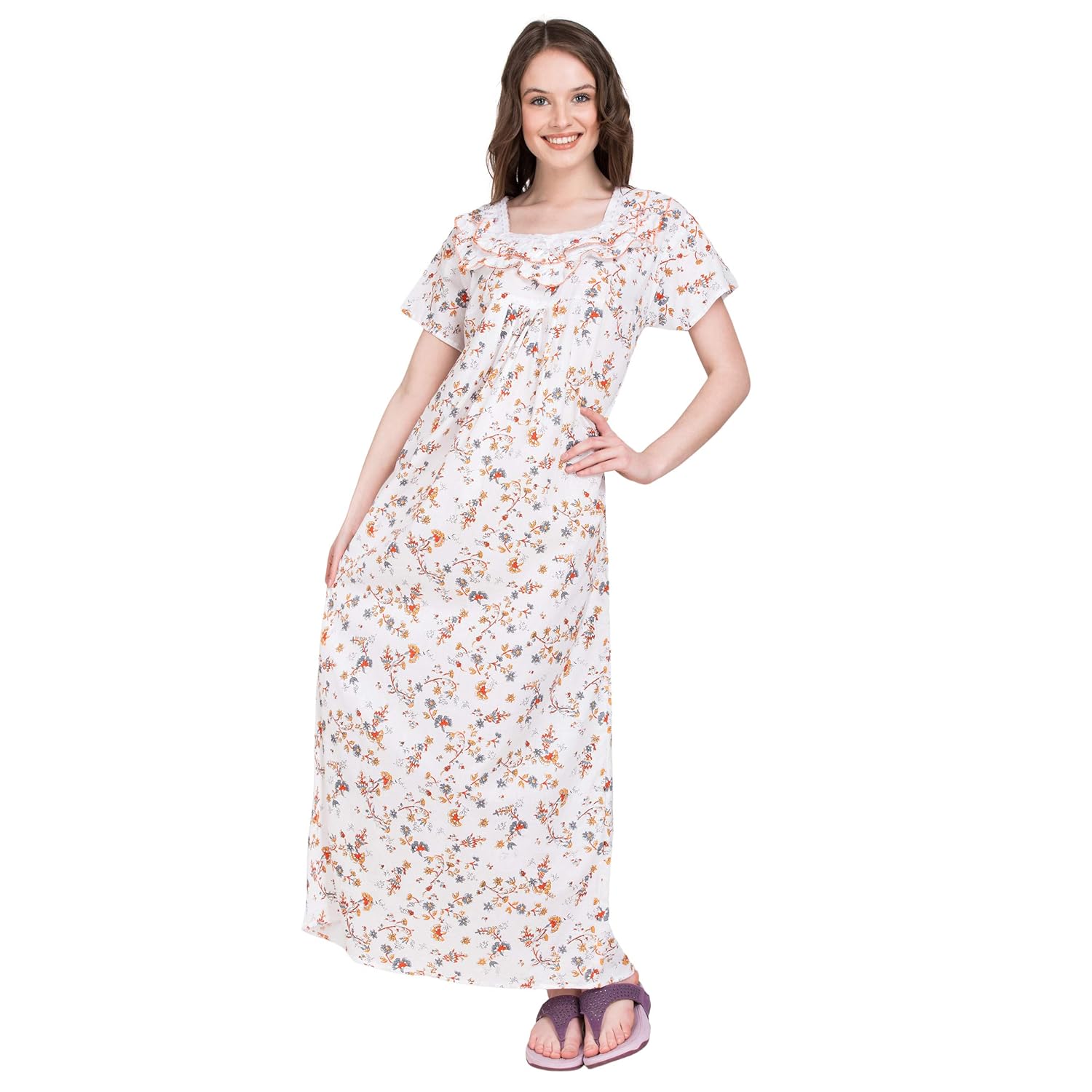 NIGHTY XL 100% PURE COTTON REGULAR NIGHTY; Full length- 53 inches; Breast- 44 inches; Waist-46 inches; Shoulder-17 inches; Skirt Ghera 64 inches; Sleeve-7 inches; NIGHTY XXL 100% PURE COTTON REGULAR NIGHTY; Full length- 55 inches; Breast- 46 inches; Waist-50 inches; Shoulder-17 inches; Skirt Ghera 66 inches; Sleeve-7 inches;
