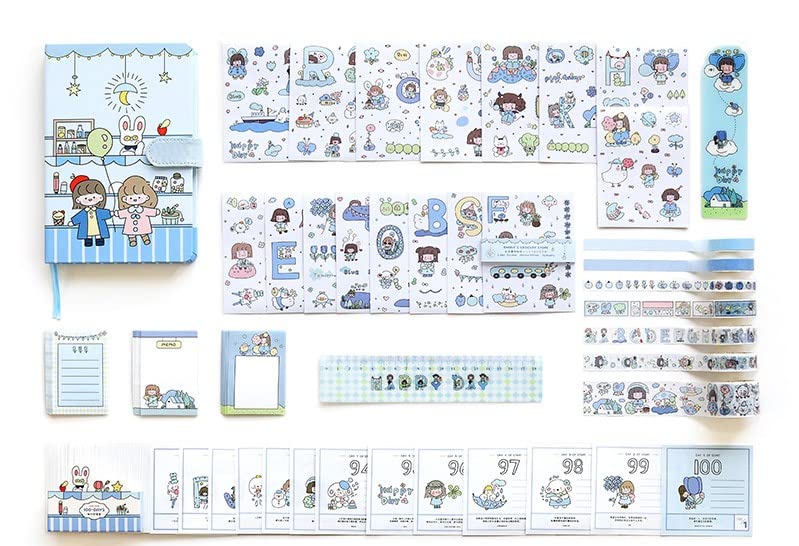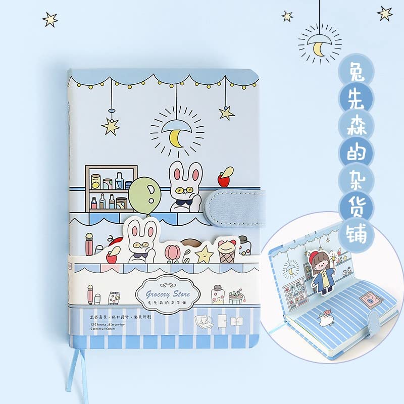 Retailio Scrapbook Kit Cute Theme Notebook, Playful Stickers Perfect for DIY Journal, Scrapbook, DIY Craft – Ideal for Craft Lovers, All-in-One Crafting Experience (Rabbit;s Grocery Store- Blue)