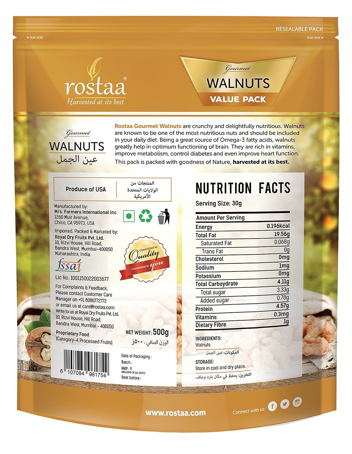 Rostaa Premium fresh Walnut (Akhrot) Walnut magaj Without Shell high in protein &iron (Gluten Free, Non-GMO & Vegan) 500gm value pack, (Akhrot Giri) Walnut Kernels 500gm | Delicious & Crunchy Walnut|, Trans Fat & Cholesterol Free,Delicious & Crunchy Walnut,Rich In Protein & Antioxidants