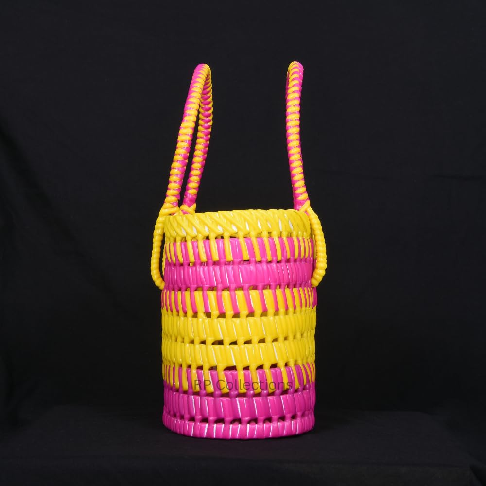 RP Collections – Handmade Plastic Tape Multipurpose Shopping basket| Grocery Koodai | Random Colours