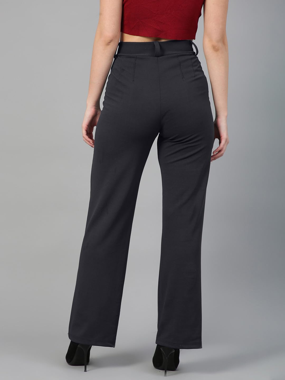 SAKHWALA Polyester Blend Flared Loose Fit Casual Wear Solid Trousers for Women