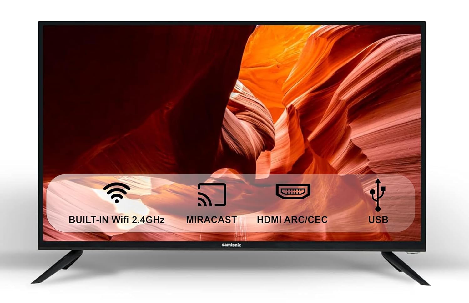 Samtonic (24 inches 61 cm I Smart Android HD Ready LED TV | HDMI & USB Ports | Powerful Audio Box Speakers (Slim Black, 2024 Model)