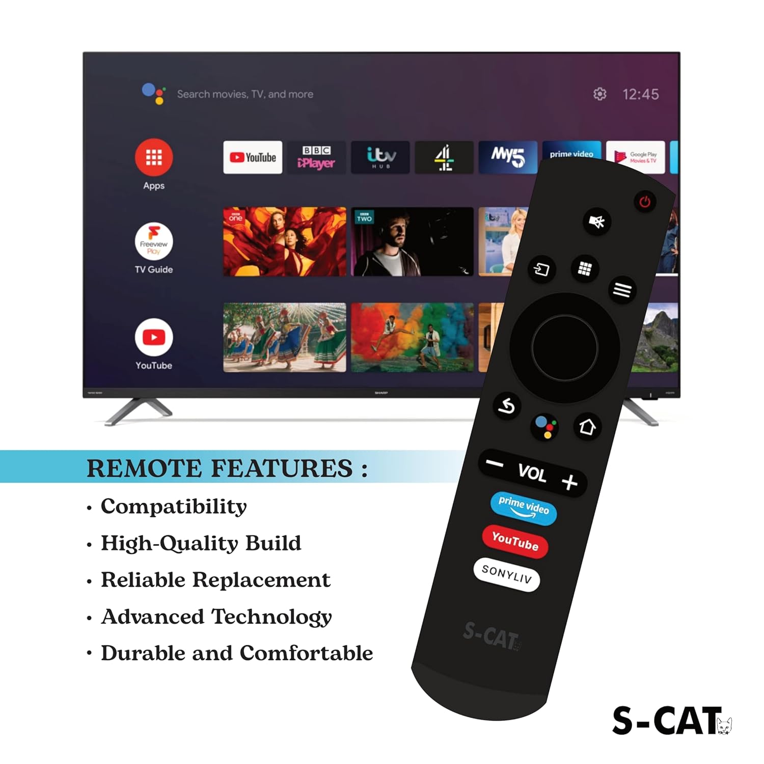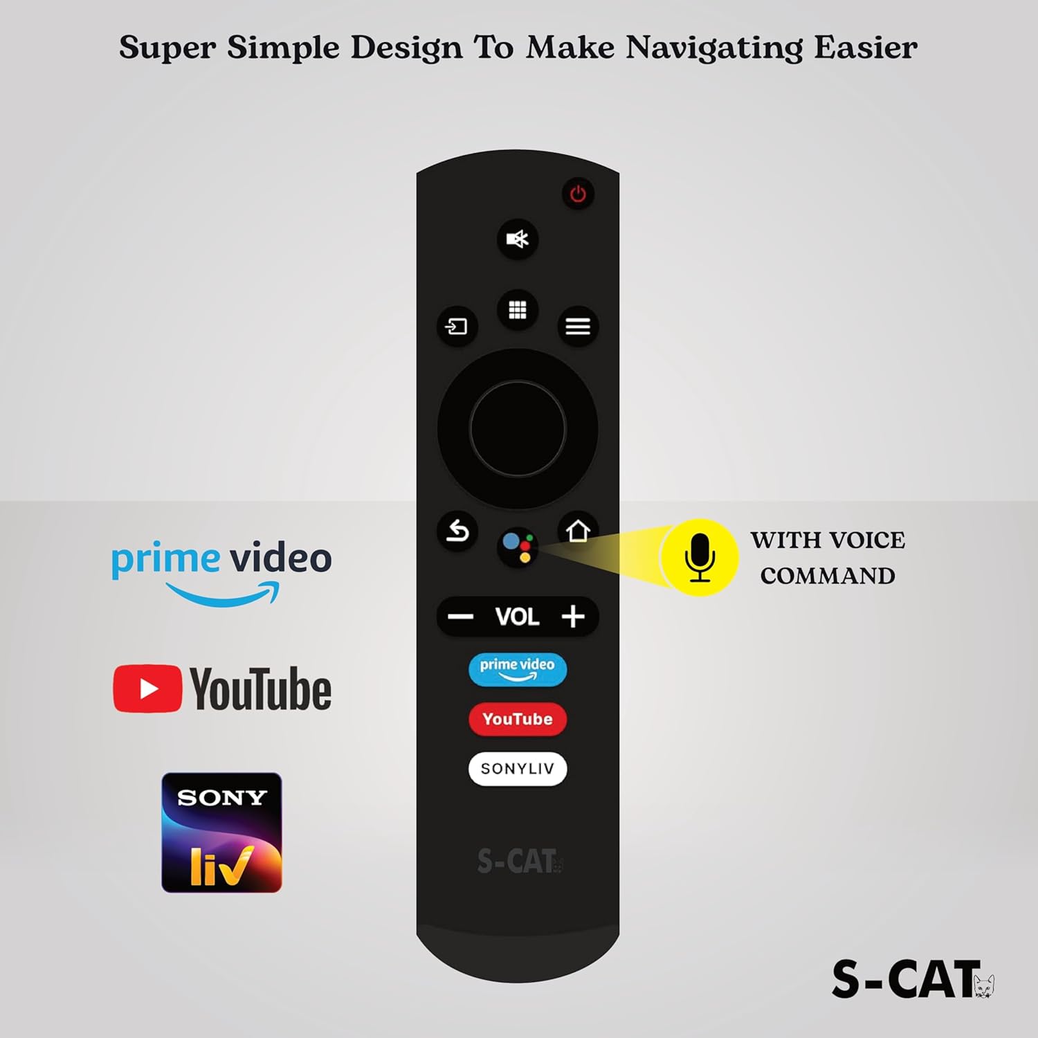 SCAT Compatible with Kodak Smart Tv Remote – with Voice Command – Hot Keys Prime Video, YouTube & SnyLIV Use for LCD LED OLED QLED UHD 4K Android TV (Pairing Must)