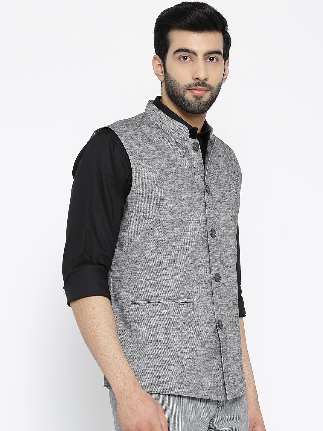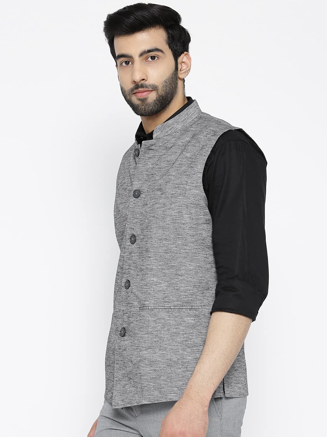 Shaftesbury London Men’s Polyester Cotton Solid Sleeveless Regular Nehru Jacket (Group11)