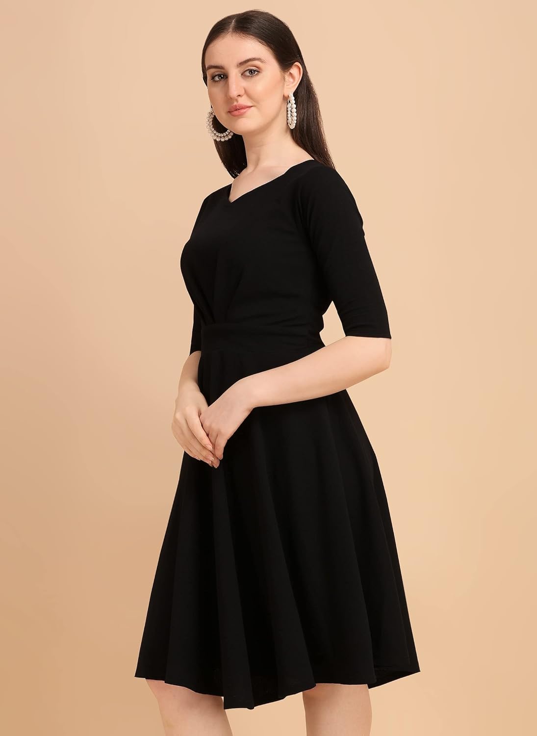 Review: Good polyester fabric material , all occasions wear, received color as shown in picture. looks pretty and fits well. Go for it