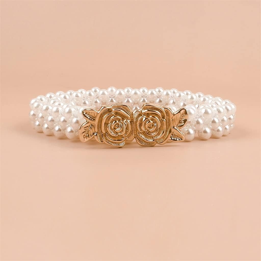 Shining Diva Fashion Stylish Traditional Western Pearl Dresses Saree Jeans Waist Belt Chain Kamarband for Women and Girls (White)