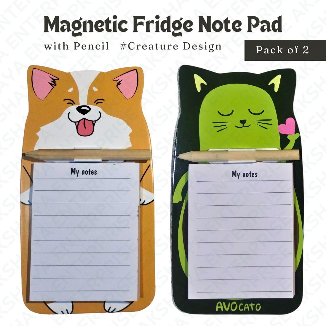 Shop Stoppers® 2 Pieces Tear-Off Magnetic Fridge Writing Notepads with Pencil for Grocery List, Shopping List, To-Do List, Multipurpose Memopads – Magnetic Back – 40 Pages per Pad (Creature Design)