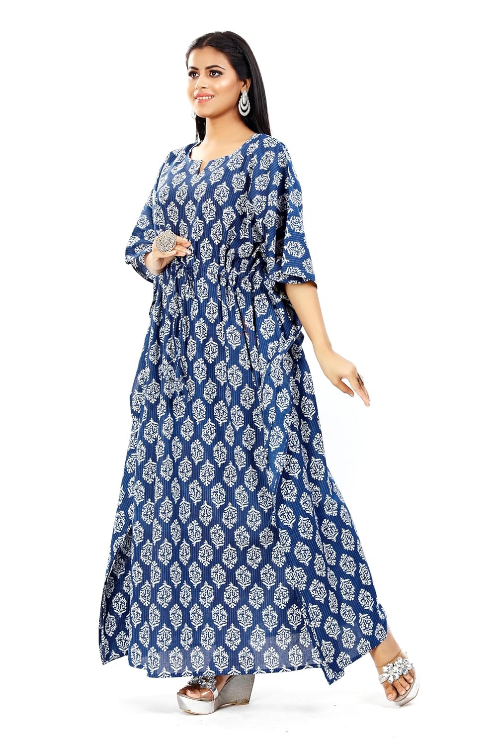 ShrI Ganesh Impex Maxi Kaftan for Women, Pure Cotton Nighty, Loungewear Kaftan | Hand Block Printed Women Nighty | Free Size Block Print