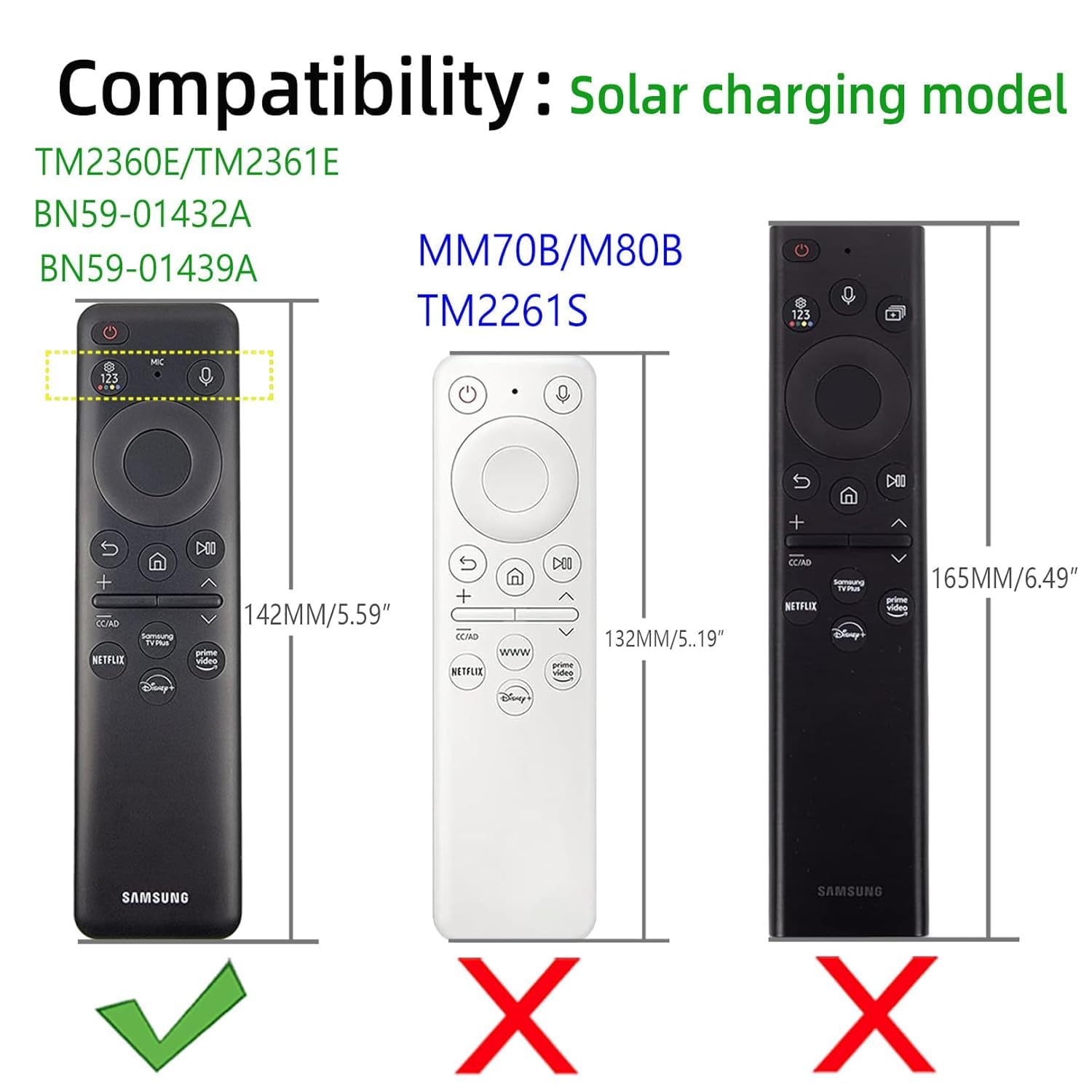Compatible with Samsung Smart TV Solar Cell Remote Control 2023 TM2360E / TM2361E / TM2365E, BN59-01432A BN59-01432J BN59-01432B BN59-01432D.(TV and Samsung Remote are not included.)
