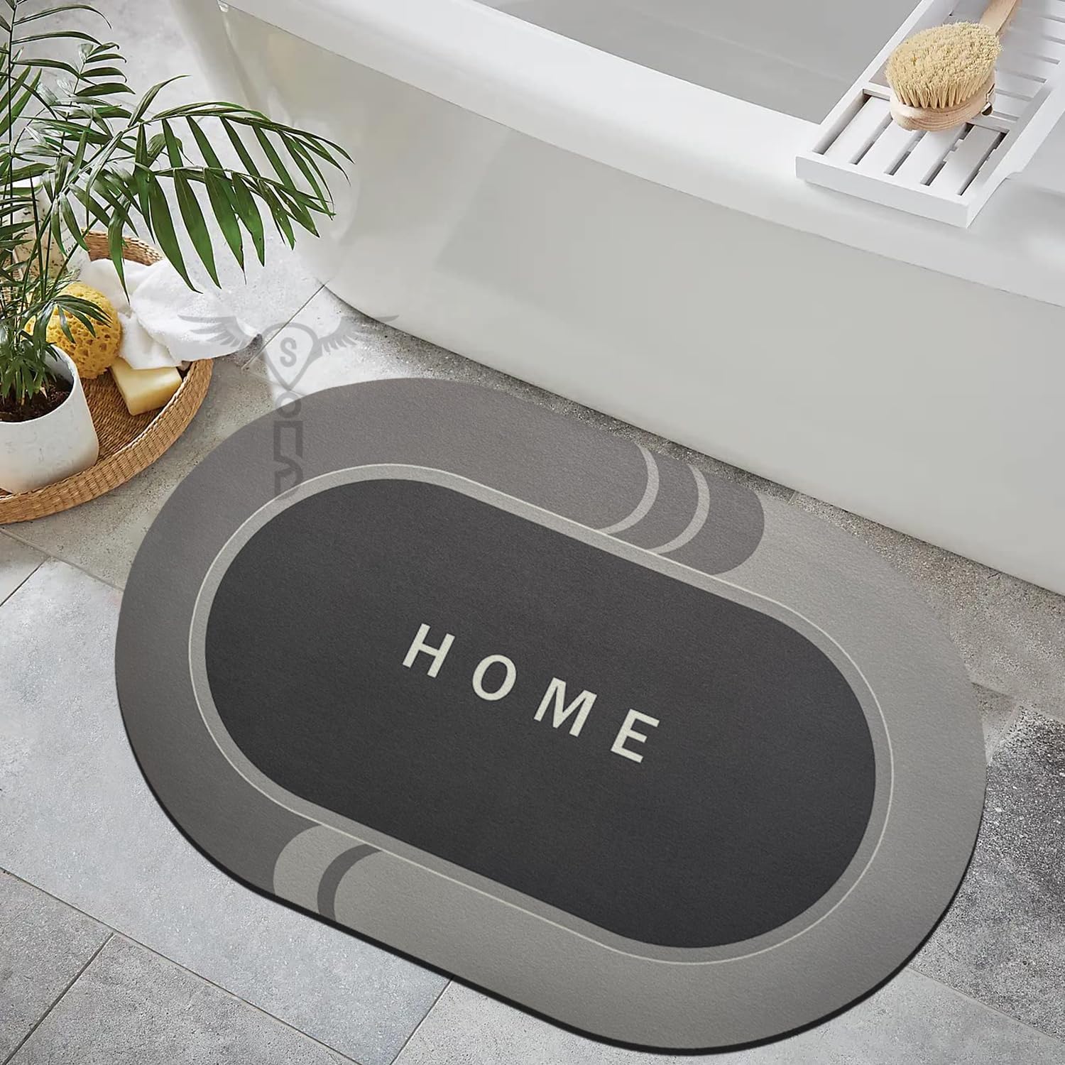 SITTELLA® 1 Piece (3.5mm) Anti-Skid Water Soaking Oval Home Print Rubber Mat, Water Absorbent Mat (40X60Cm) Grey