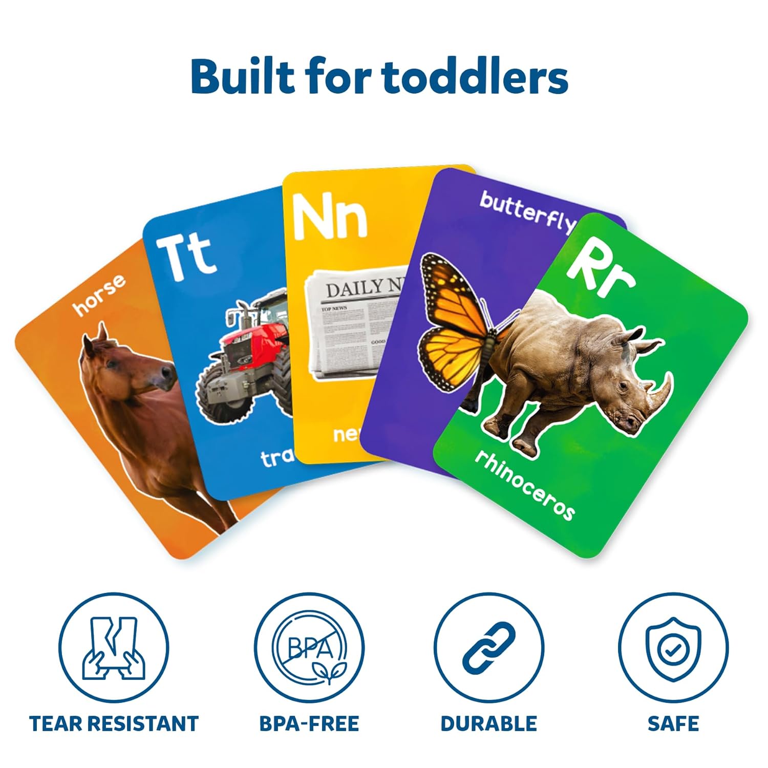 DESIGNED FOR LITTLE HANDS: Sized perfectly at 5.4 inches tall and 3.5 inches wide, our cards are easy to hold and feature vibrant, eye-catching designs with large fonts that boost visual skills.