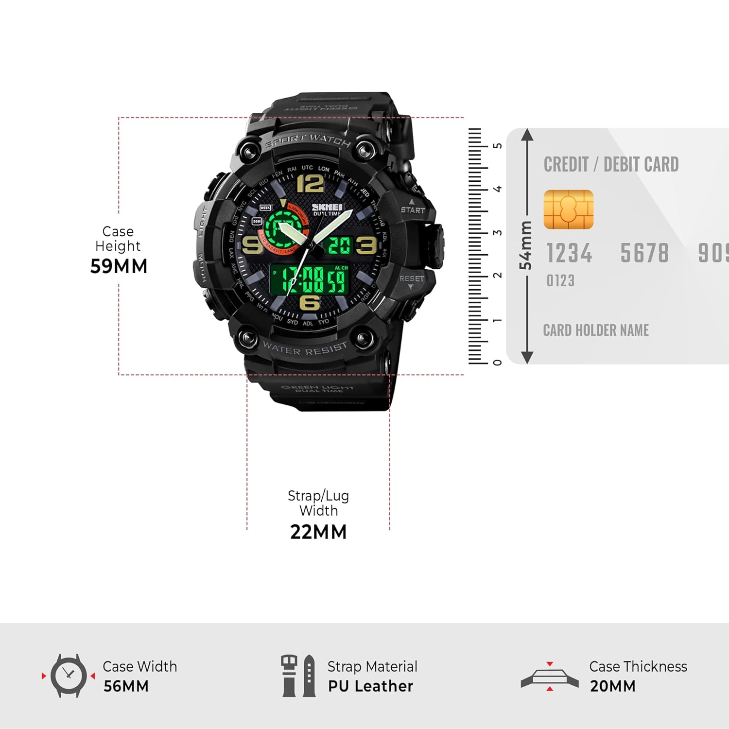 Review: i bought this product but right after 1month it’s digital time stopped and when i contacted to customer hardly i get to contact them after that they said to us there will be no warranty if u have buy this product from other instead of skemi. i will suggest u to buy at ur own risk. but the analog dial is working so good and watch is good for rough and tough oerson who are fitness freak. Band is so good and toughly attached with watch.