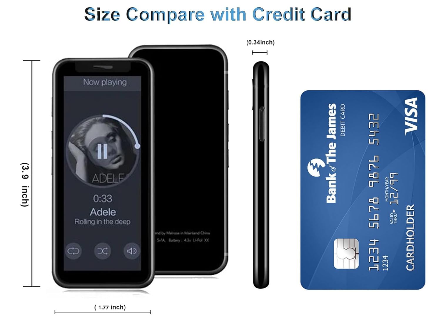 SKYSHOP® Melrose A115 World’s Smallest Credit Card Size Mini Android Smartphone 3GB and 32GB 2000mAh Dual Sim 4G LTE Volte Mobile Phone