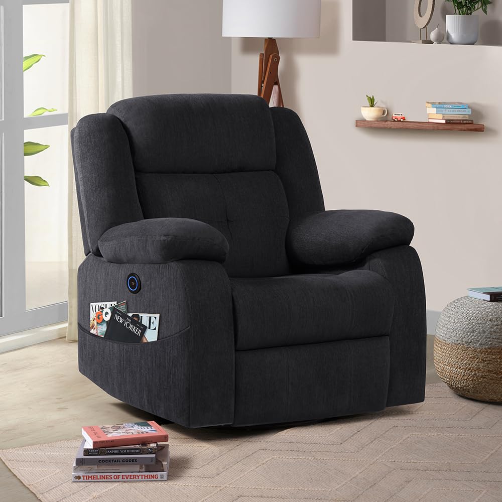 Meet your ultimate relaxation companion—the motorized RX7 Recliner! Plush cushioning and premium fabric make it feel like sitting on a cloud. Customize your comfort with adjustable angles, and keep your stuff close with a side pocket and USB port. Stylish in trendy colours—brown, green, grey, and blue. Maintenance is a breeze—just plug it in and unwind! Level up your chill game with the comfiest, most stylish seat. Plug in and let the relaxation revolution begin!