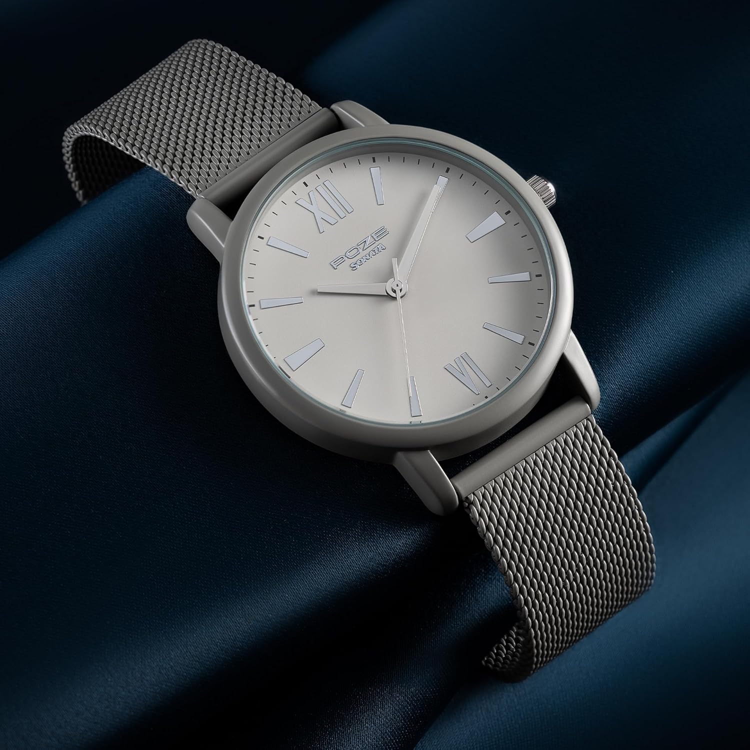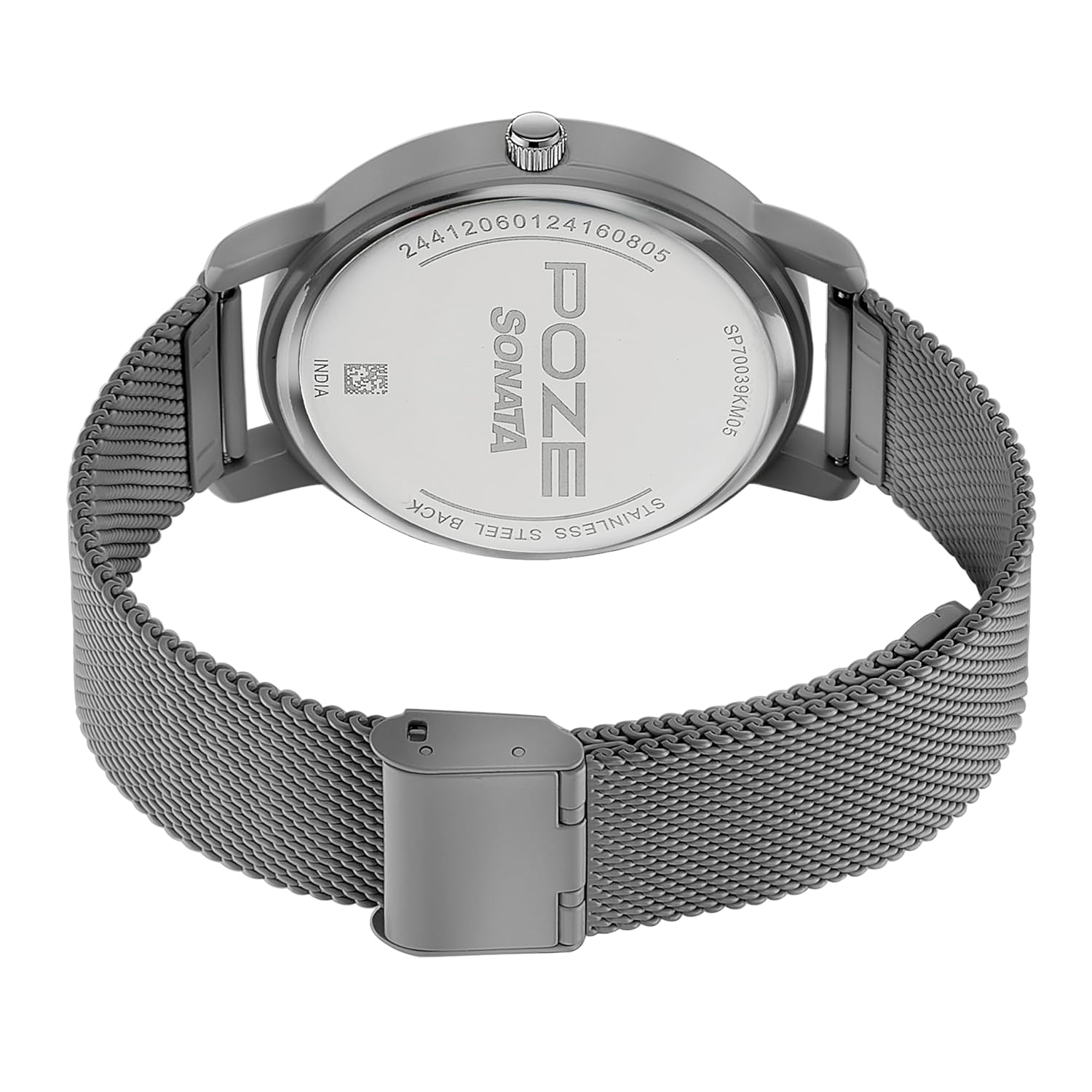 Sonata Poze Quartz Analog Grey Dial Mesh Strap Watch for Men-SP70039KM05W