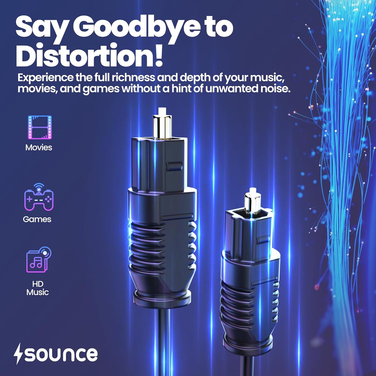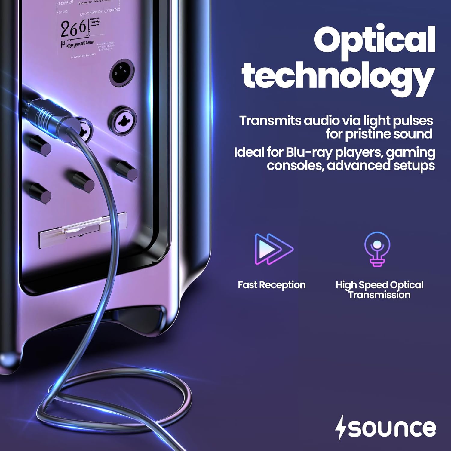 【Sounce Assurance of Quality】: Trust in the quality and reliability of the Audio Fiber Optic Cable backed by the Sounce brand. With a commitment to excellence, Sounce ensures that you elevate your audio experience with confidence, knowing you have a premium cable delivering superior performance for your entertainment and professional setups.