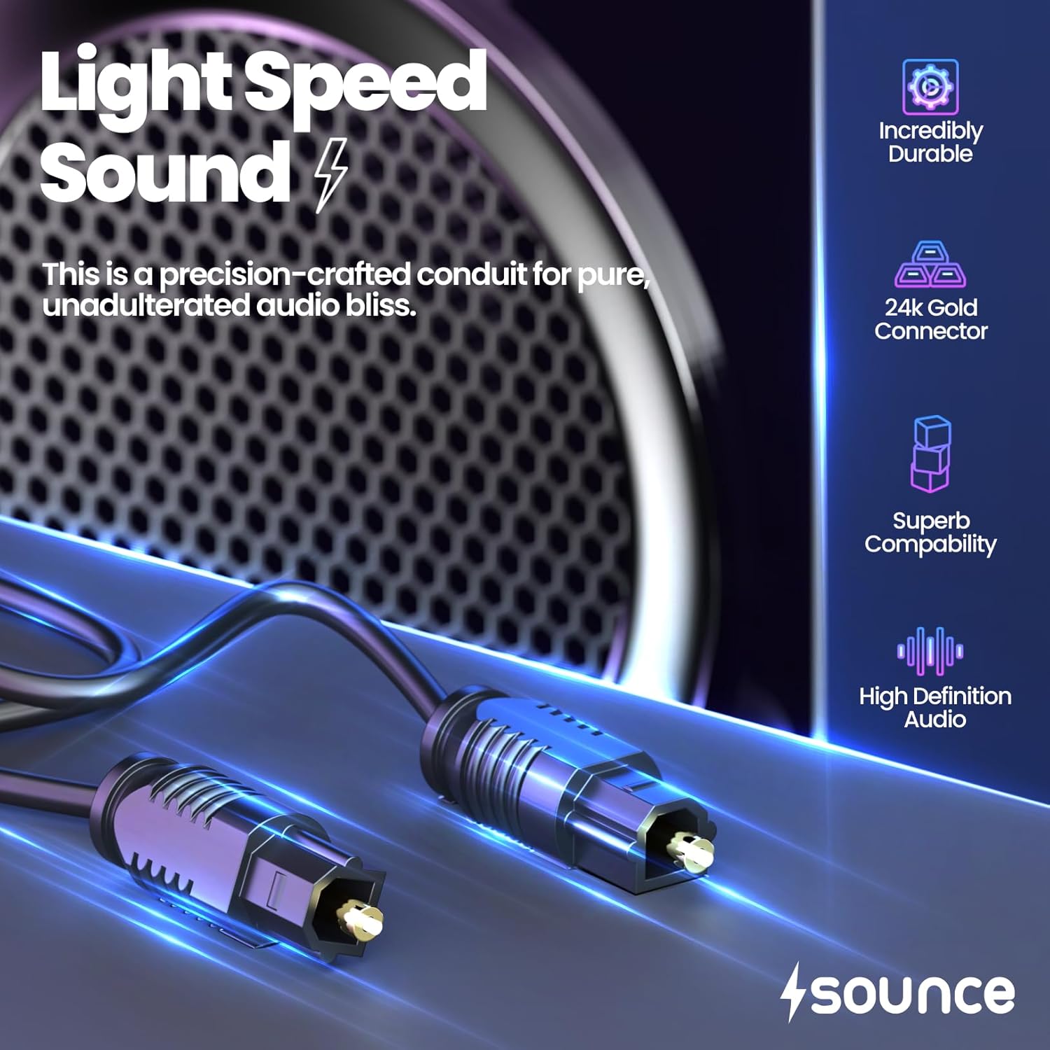 【Sounce Assurance of Quality】: Trust in the quality and reliability of the Audio Fiber Optic Cable backed by the Sounce brand. With a commitment to excellence, Sounce ensures that you elevate your audio experience with confidence, knowing you have a premium cable delivering superior performance for your entertainment and professional setups.