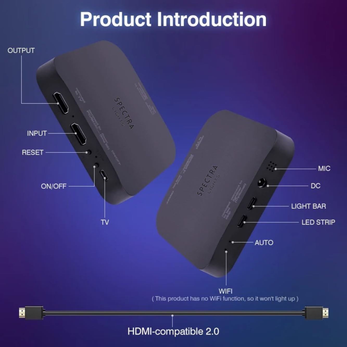 Spectra Lights HDMI Sync Box 2.0 – TV LED Backlight for 40-50 inch TVs with PC, Screen Sync. Enhance Your TV, Gaming, Music and Entertainment Experience. (40-50 inch TV)