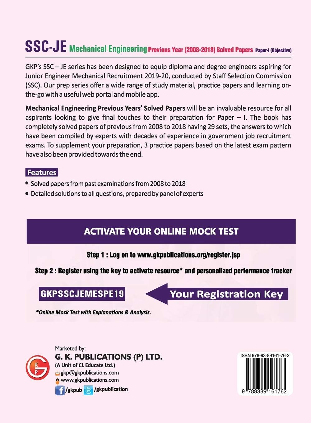 GKP’s SCC – JE series has been designed to equip Diploma Engineers aiming for Junior Engineer recruitment examination 2019-20 conducted by Staff Selection Commission (SSC). Our Prep Series offers a wide range of study materials, practice papers and learning on-the-go with a useful web portal and mobile app. One among them is Mechanical Engineering Previous Years’ Solved Papers which will act as an invaluable resource for all the aspirants looking to secure a berth in Paper – I. The book includes 29 (sets) completely solved papers from 2008 to 2018, the answers to which have been compiled by experts with decades of experience in government job recruitment exams. To supplement your preparation, 3 Practice Papers based on the latest exam pattern have also been provided towards the end. Features: • Completely Solved Papers from 2008 to 2018 • Detailed explanations of all questions prepared by experts