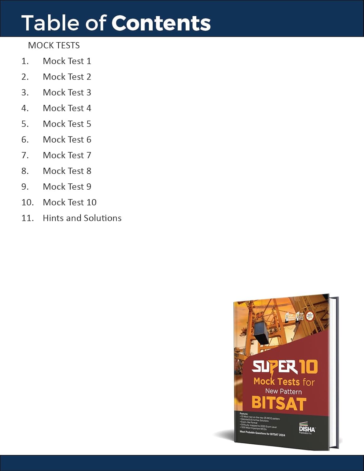 Super 10 Mock Tests for New Pattern BITSAT | Physics Chemistry Mathematics English & Logical Reasoning | 130 MCQs in each Test with Solutions |