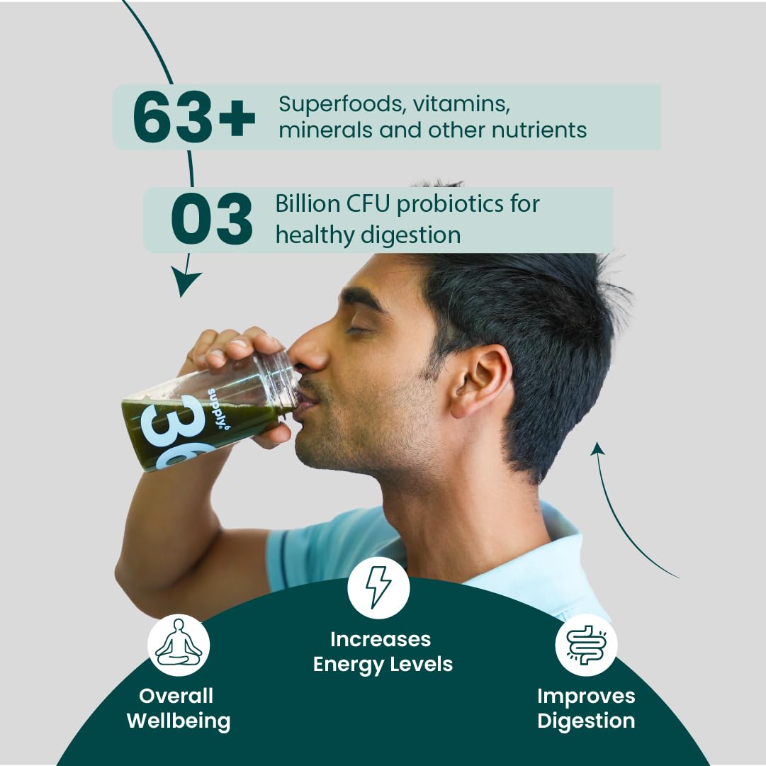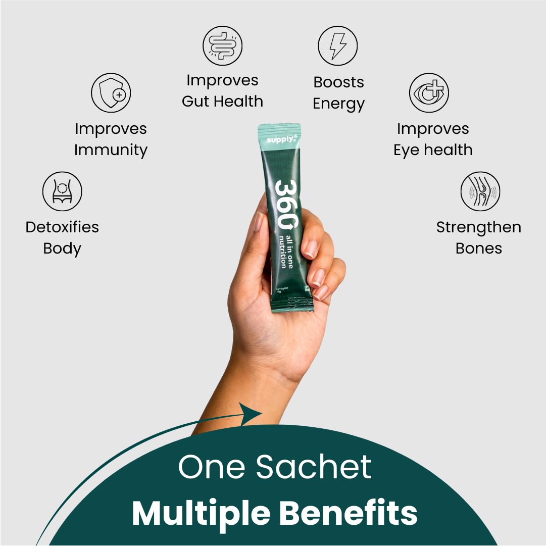 Supply6 360 Gut Health Powder for Woman and Men | 3Billion CFU Probiotics | Improves Digestion + Boosts Energy and Immunity | Clinically studied Prebiotics with Dietary Fibres (15 Servings)
