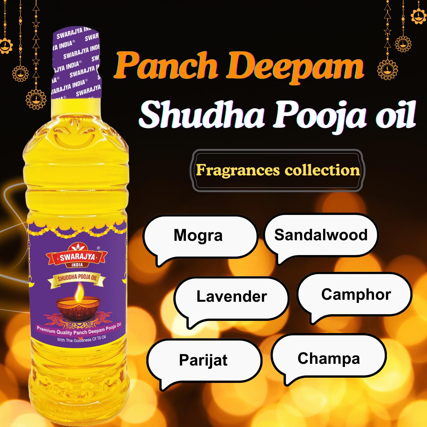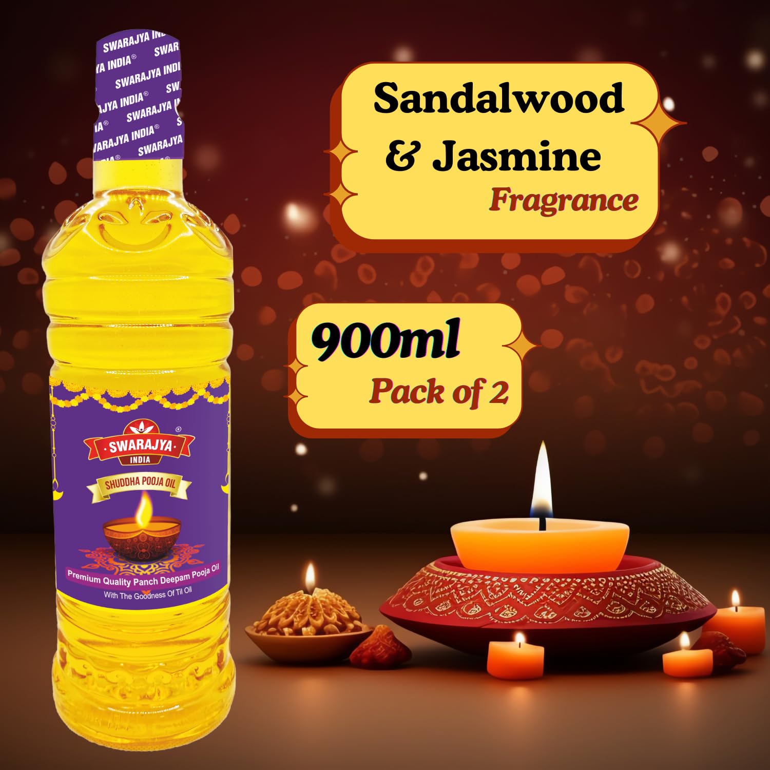 Swarajya India Pooja Oil Combo | Jasmine & Sandalwood Fragrance | Sacred Aroma for Spiritual Rituals | 900 ml (Pack of 2)