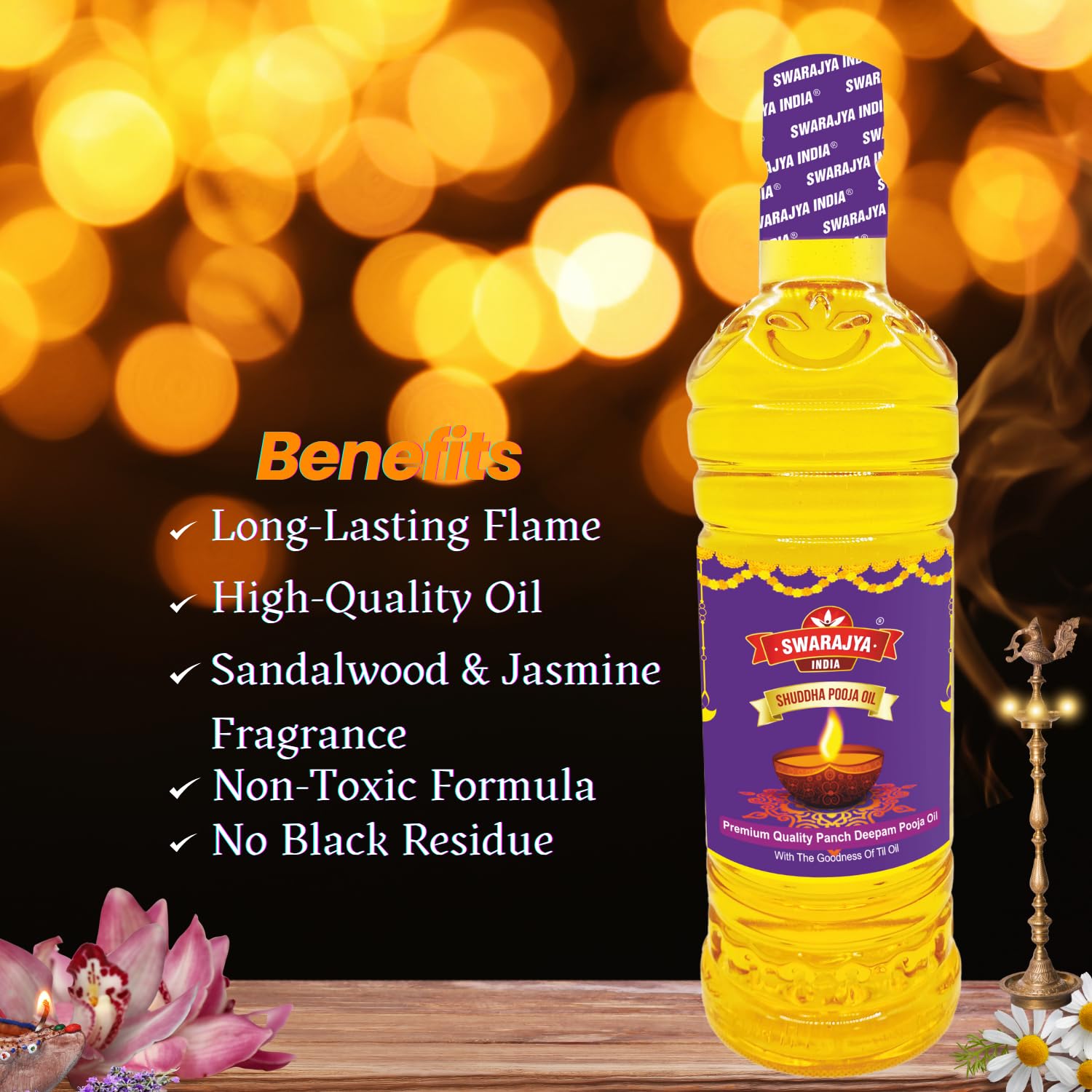 Enriched with Til Oil: Our Pooja Oil is carefully crafted with the goodness of Til oil, ensuring an authentic and enriching ritual experience.