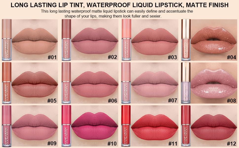 SWIZHUDA 12, a must-have collection for every makeup enthusiast. This set offers an array of stunning shades that will take your lip game to the next level. Each lipstick is formulated with precision to deliver a long-lasting and non-stick matte finish. The liquid matte formula glides smoothly on your lips, providing intense pigmentation that stays put throughout the day. Waterproof and transfer-proof, these lipsticks ensure that your vibrant color stays intact, no matter the occasion. With a set of 12 captivating colors, you’ll have endless options to explore and express your personal style. From bold and vibrant to subtle and sophisticated, there’s a shade to suit every mood and look. Whether you’re getting ready for a glamorous night out or a casual day at the office, this versatile lipstick set has got you covered. Not only do these lipsticks provide a flawless matte finish, but they also nourish and moisturize your lips. The waterproof formula is infused with hydrating ingredients to prevent dryness and keep your lips looking and feeling their best. In addition to the lipstick set, Handaiyan also offers a range of complementary lip products. Enhance your pout with the Lip Gloss, designed to give your lips a lustrous shine and a plump appearance. For a touch of color on your cheeks, try the Handaiyan Blush, which provides a natural flush and blends seamlessly into the skin. Whether you’re a lipstick connoisseur or a beauty enthusiast looking to expand your collection, the Lipstick Set is a must-have addition. Experience the power of vibrant, long-lasting colors and indulge in the luxurious matte finish that will make your lips stand out from the crowd.