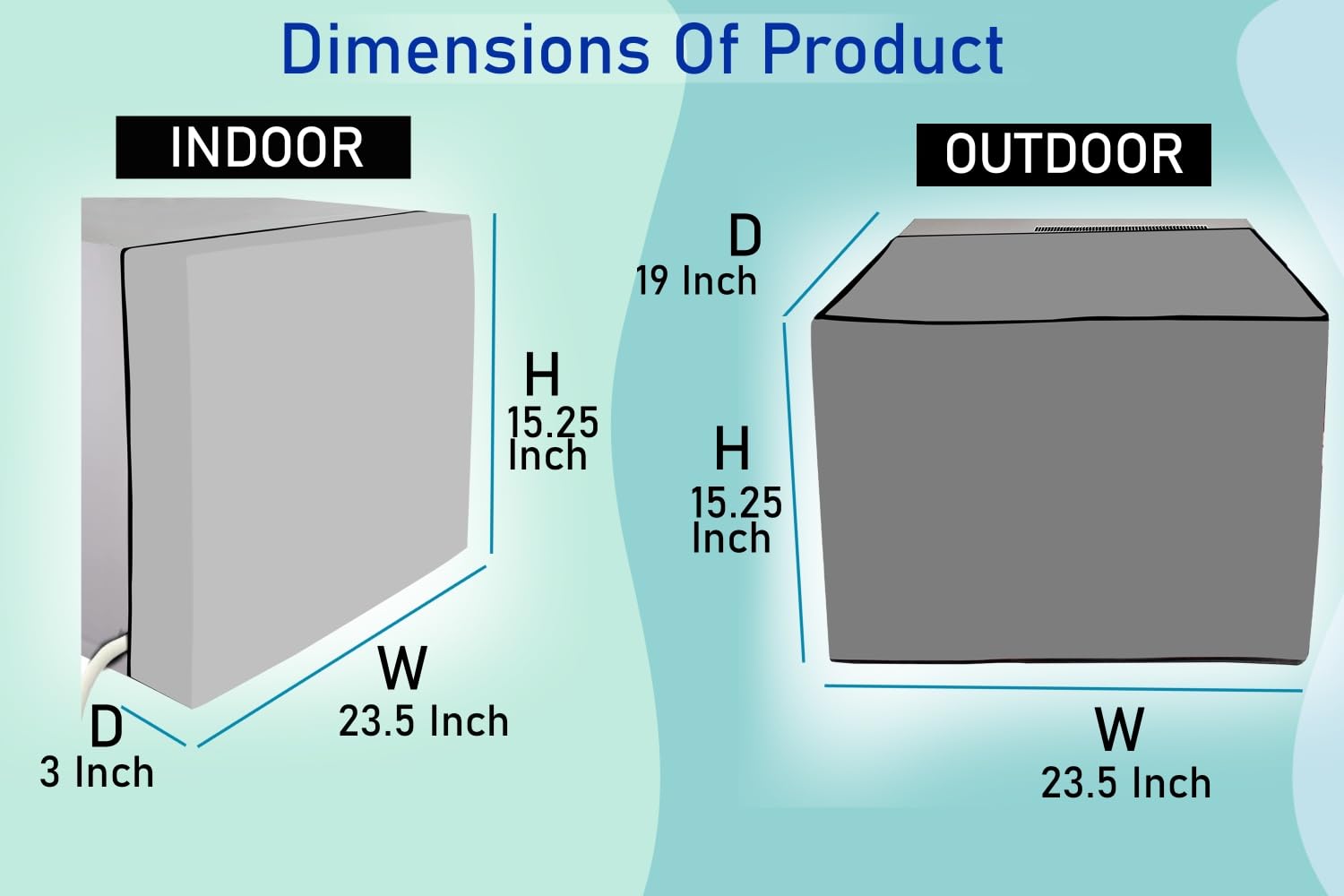 window ac cover Dimension DxWxH Indoor inches (3×23.5×15.25) – CM (7.62×59.69×38.735) Outer inches (19×23.5×15.25) – CM (48.26×59.69×38.735)