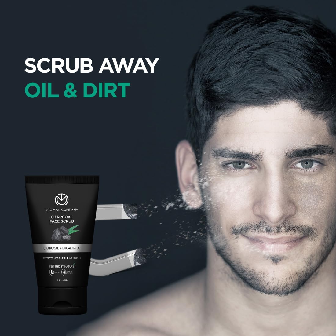 The Man Company Charcoal De-Tan Face Scrub for Glowing Skin | Anti Acne, Blackhead Remover for Oily Skin (75 g (Pack of 1))