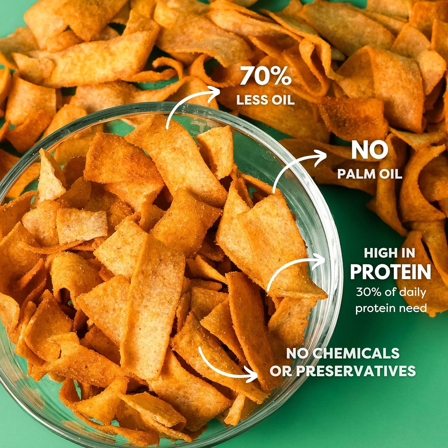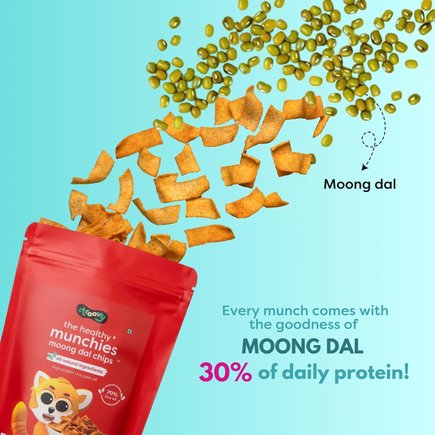 Making moong dal munchable for you 🙂 Introducing Troovy’s Healthy Moong Dal munchies in Tangy Tomato flavor, made with lentils and a burst of protein to make your snacking treats healthy Each pack is 70 grams Vacuum-fried, Chemical-free and Protein-loaded Moong Dal munchies Seasoned with Himalayan Pink Salt Has 30% of child’s daily protein needed 70% less oil than regular fried chips No junk- No palm oil, No trans fat, No maida Deliciously seasoned, crunchy and wholesome Use Troovy’s chemical-free sauces as dips for a healthier and wholesome indulgence Has a shelf life of 6 months