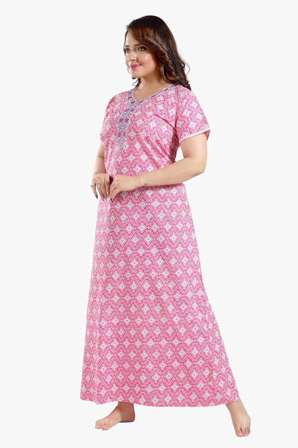 TRUNDZ Women’s Cotton Embroidered Maxi Nighty
