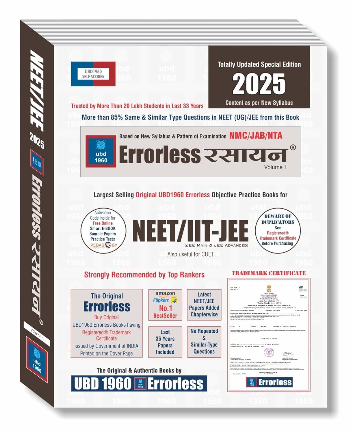 UBD1960 Errorless Chemistry Hindi रसायन for NEET/IIT-JEE(Main & Advanced)as per NMC/JAB(Paperback+Smart E-book)New Edition2025(2volumes)Original Errorless Self Scorer with Trademark Certificate
