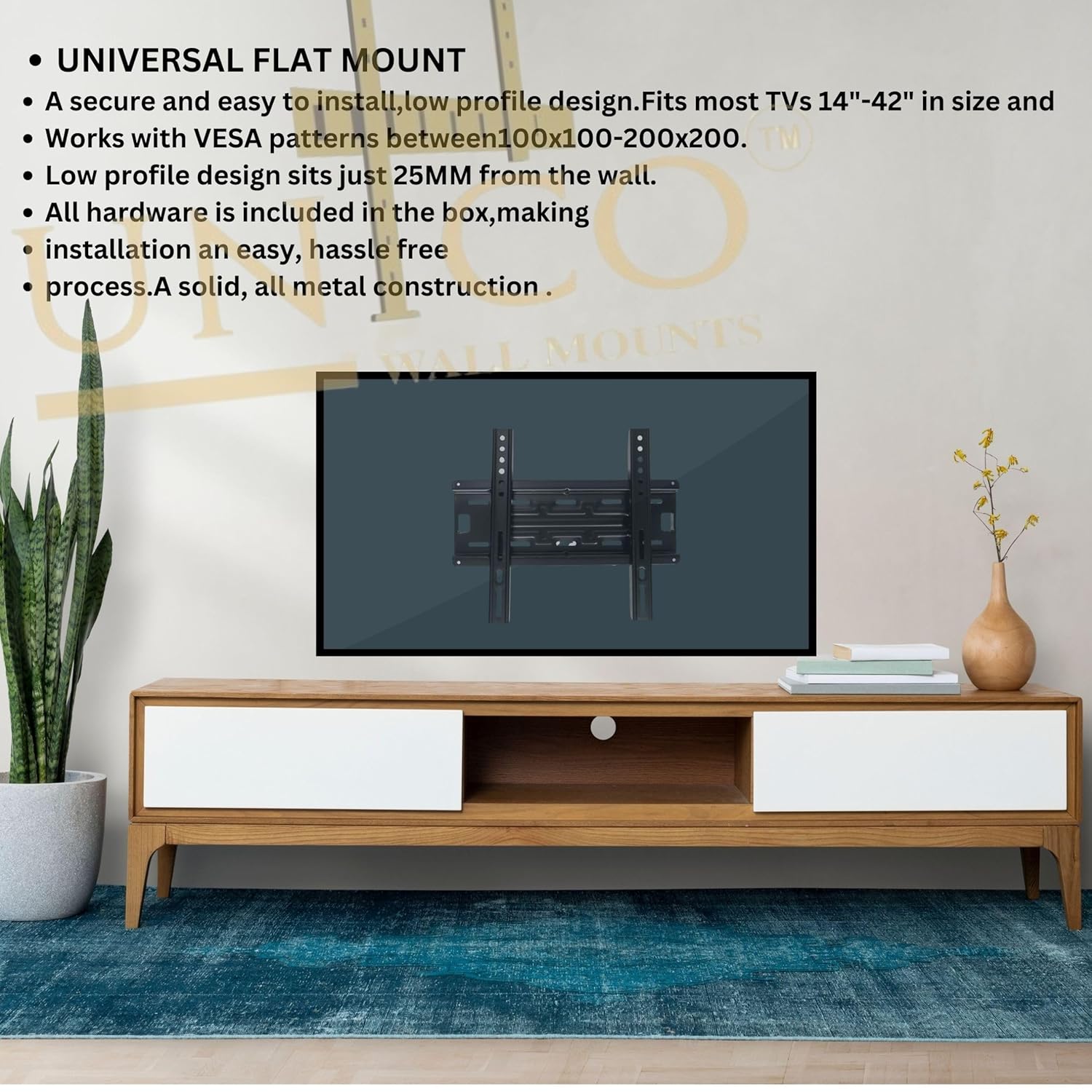 UNIVERSAL FIT: This fixed wall mount bracket fits most LCD, LED and plasma TVs between 14 to 42 inches with a VESA pattern of 100x100mm or 200x200mm.