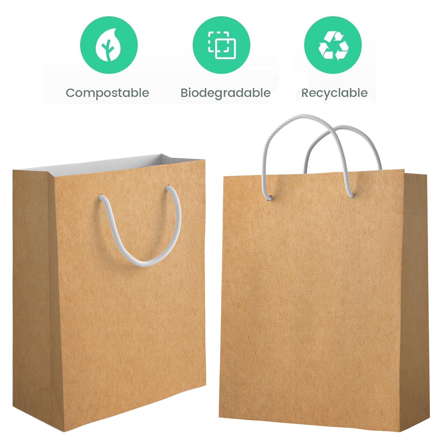 ECO-FRIENDLY: Crafted from 100% recycled paper, these reusable and biodegradable small gift bags with rope handles contain no chemicals or odors. They can also double as snacks, candy, cookies, or shopping bags.