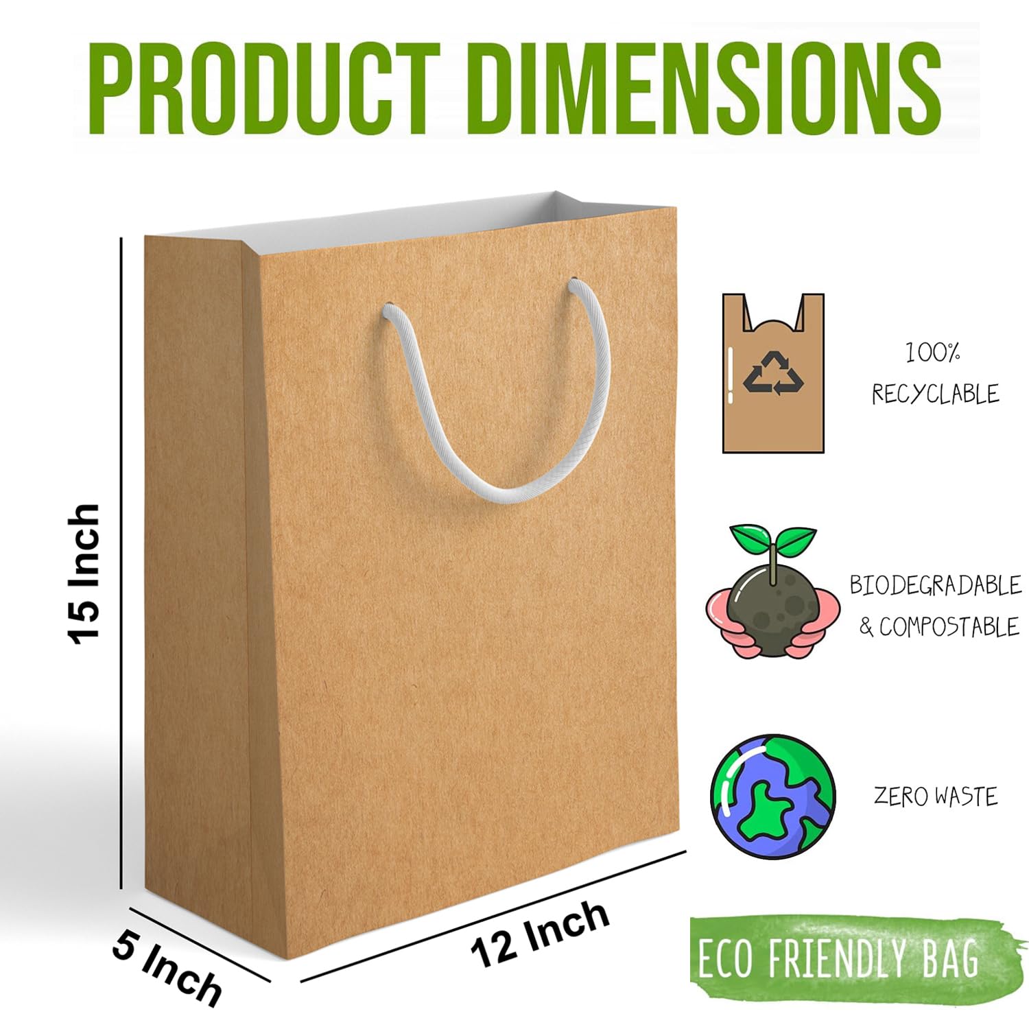 DURABLE QUALITY: Made from 120 GSM kraft paper, these kraft paper gift bags are sturdy and built to withstand everyday use. The flat and stable bottom allows the bags to stand upright when filled.