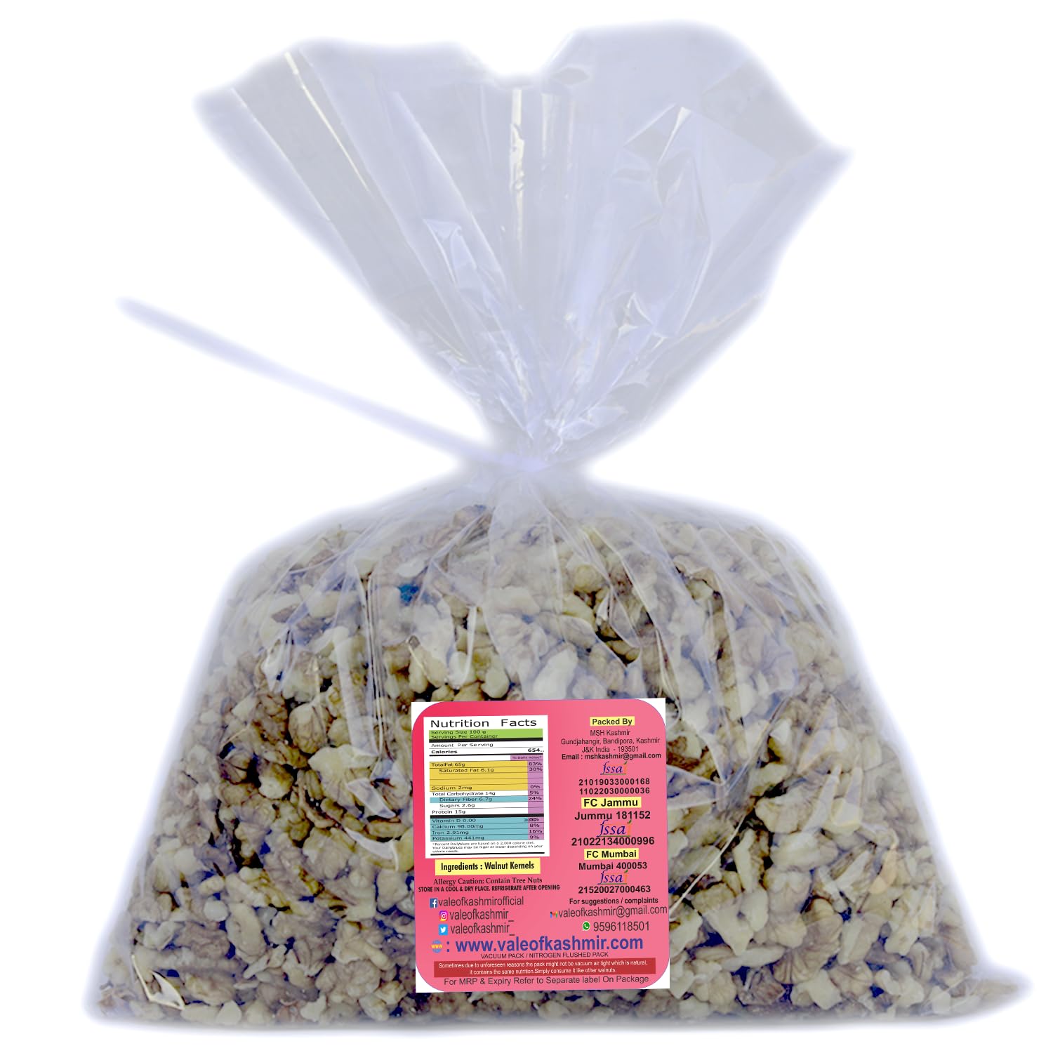 Vale Of Kashhmir Walnut Kernels Broken 500 Grams, Organic Kashmiri Walnuts