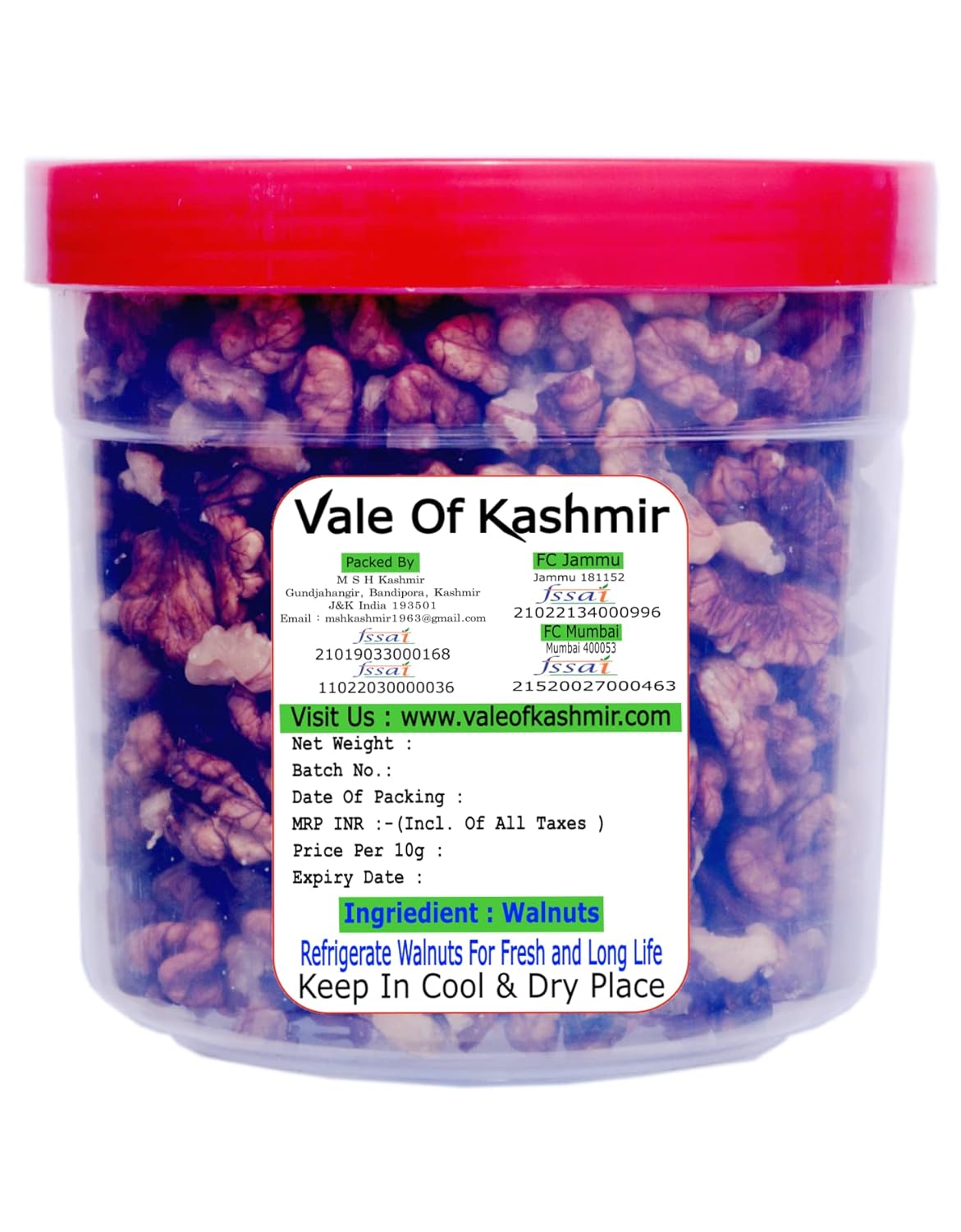 Vale Of Kashmir Walnut Kernels 500g Brown Half In Food Grade Jar, Fresh Tasty Indian Walnuts, Akhrot Giri