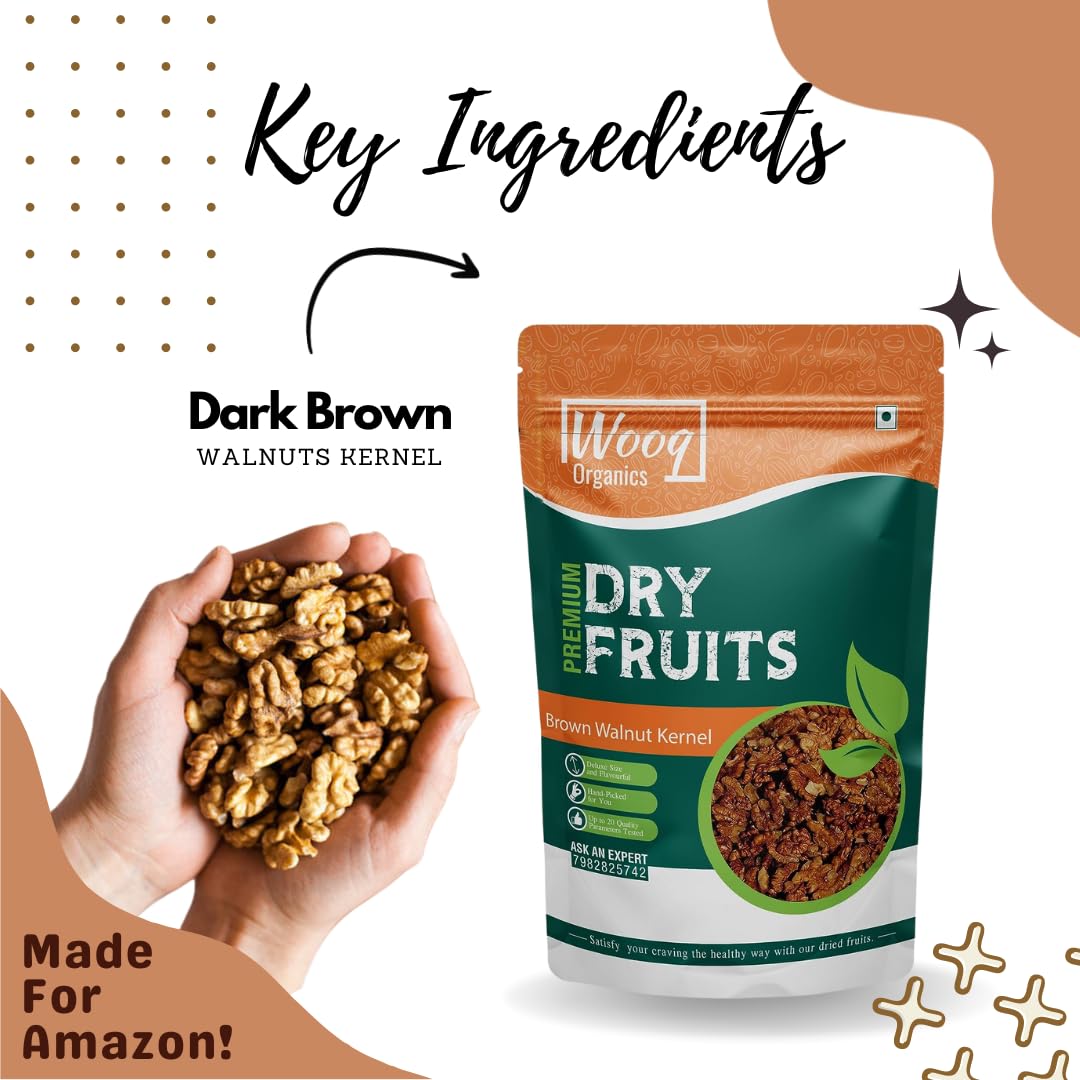 Wooq Organics Kashmiri Walnuts Kernel Without Shell 1kg, Dark Brown Akhrot Giri 2Pcs.