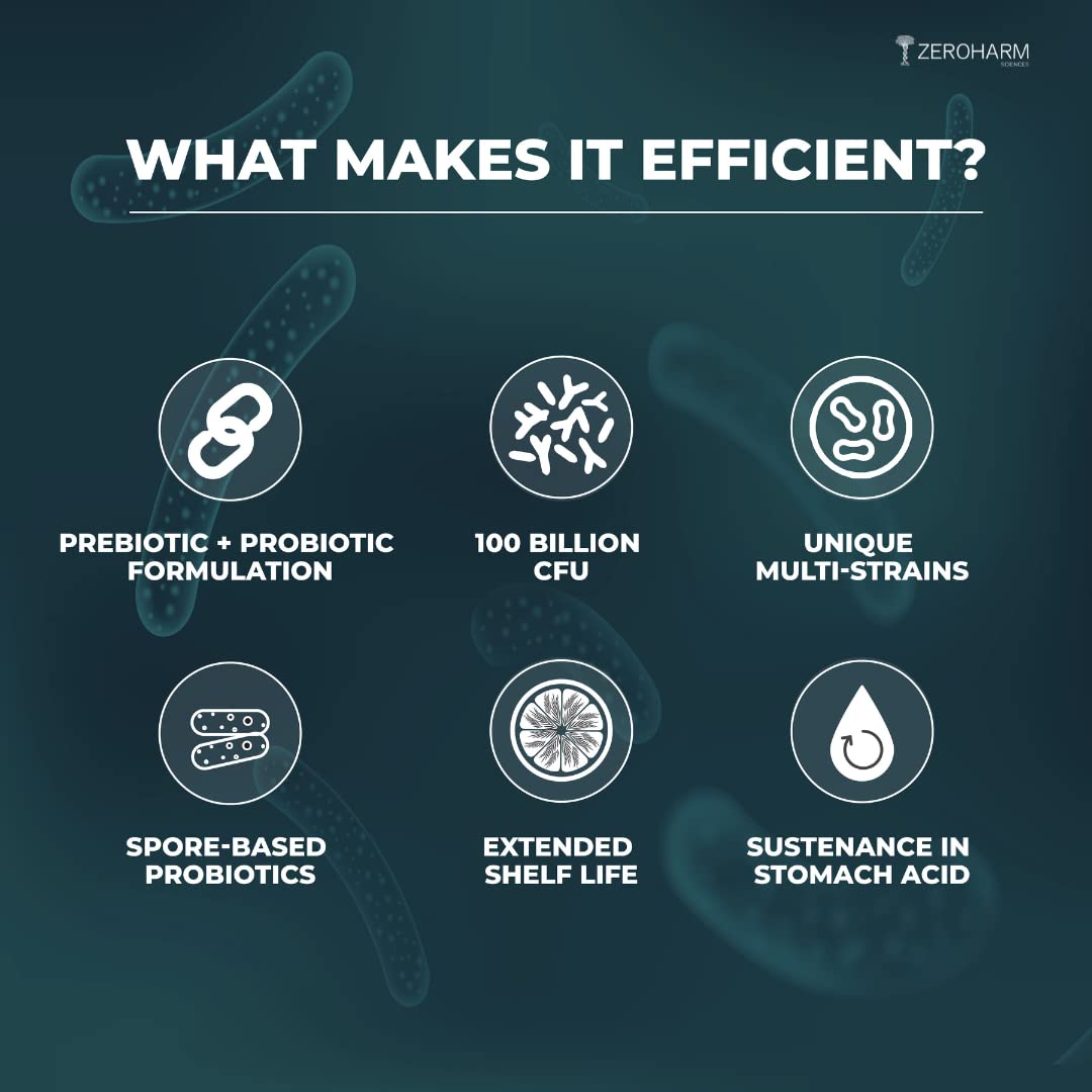 ZEROHARM Gut Army Probiotics for Constipation & IBS 60 Veg Capsules, 100 billion CFU for Constipation Relief, Stomach & Colon Cleanser, Diarrhea, Bloating & Acidity, Improve Digestive Health