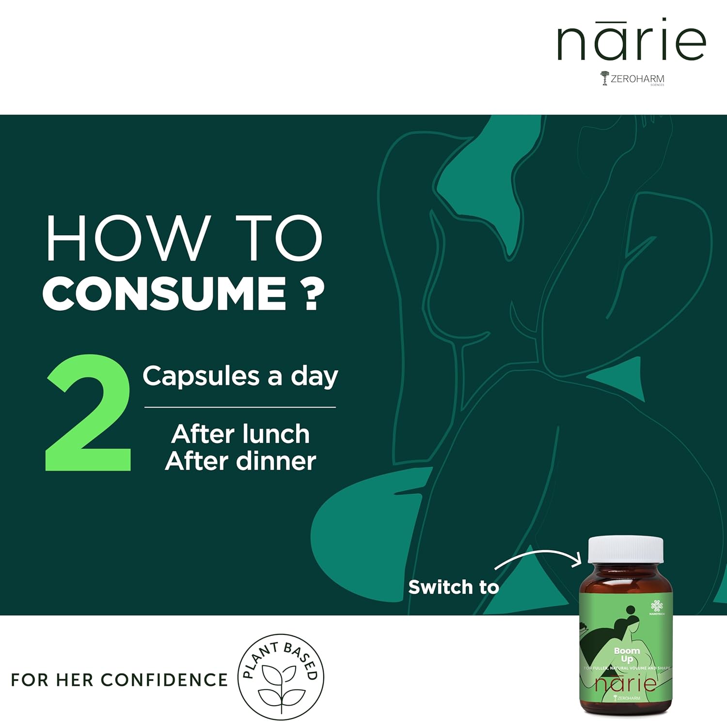 ZEROHARM Narie BoomUp Capsules for Women | 60 caps with Shatavari, Fenugreek & 4 more ingredients to support b-care | Feel healthy & fuller volume |Embrace your natural beauty with this powerful blend.